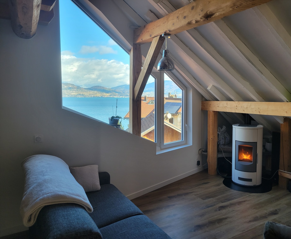 🤍 Apartament jest idealny dla par lub podróżujących w pojedynkę, którzy szukają komfortu i relaksu Apartament o powierzchni🏔️ 85 m² z długim balkonem, z którego roztacza się niesamowity panoramiczny widok na góry, winnice i Jezioro Genewskie. 🌅 Od listopada do marca, gdy dni stają się krótsze, piękno wschodów słońca jest jeszcze bardziej intensywne 🍇 Idealne do zwiedzania Lavaux i jego winnic położonych na tarasie wpisanym na listę światowego dziedzictwa UNESCO 🏖️ Spokojna alternatywa nad Jeziorem Genewskim z odosobnionymi plażami latem