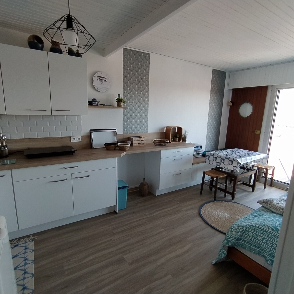 Propose a la location appartement T 2 les pieds dans l'eau, 5 nuits minimum, idéalement placé, accès direct à la grande plage par la résidence, vue Marina, 3 personnes, idéal 3 adultes ou 1 couple avec 1 enfants.1 lit en 140 chambre, 1 lit en 90 salle de vie. WC à part, cuisine intégrée aménagée se prolonge dans la pièce de vie par un agréable coin repas. Animaux non acceptés.(appart neuf).5 jours mini. Hors saison arrivées et départs les mercredi et samedi dimanche uniquement.