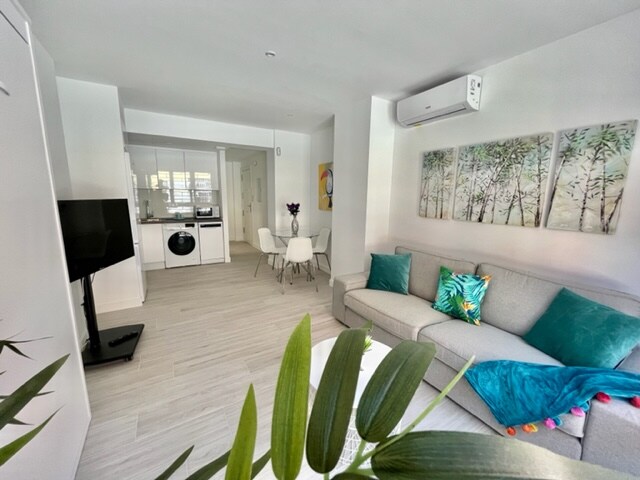 Mieszkanie na poziomie ulicy. Idealne na podróże służbowe, wyjazdy do nauki, sprawy medyczne itp. z płytą ceramiczną, lodówką, pralką/suszarką, zmywarką, pompą gorącego/zimnego powietrza, kuchenką mikrofalową, Nespresso, kompletnymi przyborami kuchennymi, czajnikiem do naparów, podwójnym łóżkiem, sofą 190x150, smart TV, Wi-Fi, alarmem, bezpośrednią linią metra do Sol (15”), dużą łazienką, prysznicem przeciwdeszczowym, automatycznym dozownikiem żelu. Ogród, bardzo łatwy parking, z dwoma placami zabaw dla dzieci z huśtawkami
