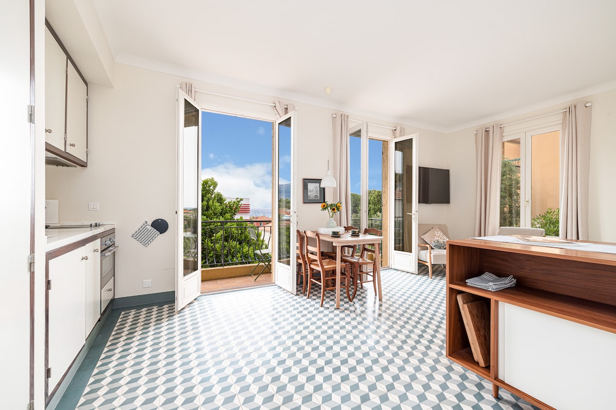 Odnowiony apartament z dwiema sypialniami, łazienką, dużym salonem z kuchnią amerykańską, tarasem i wyjątkowym widokiem na wioskę St Jean Cap Ferrat. W budynku znajduje się winda, ale aby dostać się do apartamentu, musisz przejść kilka kroków.