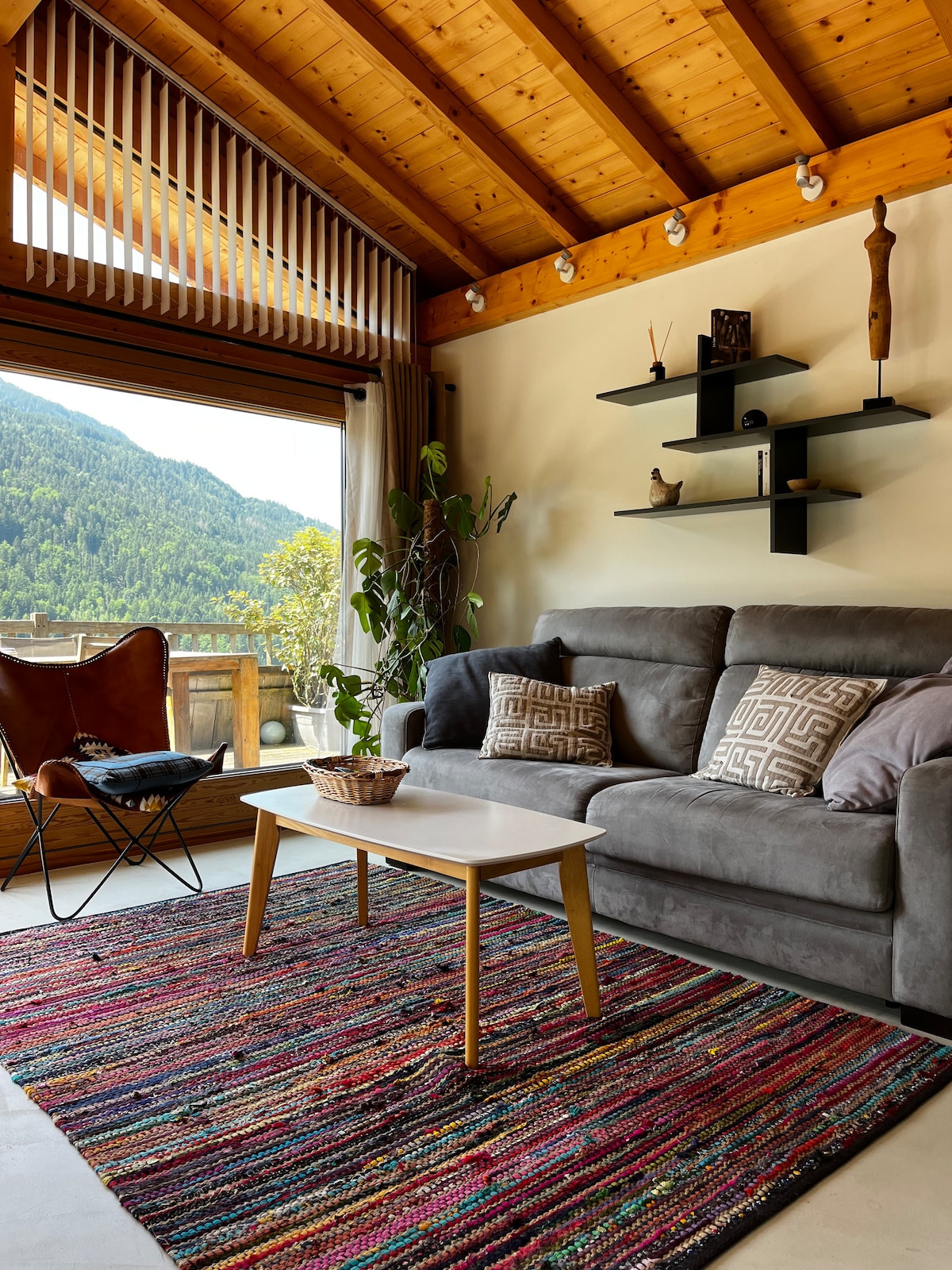 Ten przestronny loft o powierzchni 62 m² znajduje się w odosobnionej górskiej chacie bez bezpośrednich sąsiadów i posiada własny prywatny taras o powierzchni 16 m². Z każdego zakątka apartamentu roztacza się zapierający dech w piersiach widok na góry Aravis i La Tournette, który zachęca do kontemplacji. Ciesz się niezależnym dostępem przez zewnętrzne kamienne schody i wygodnym prywatnym parkingiem tuż za domkiem.