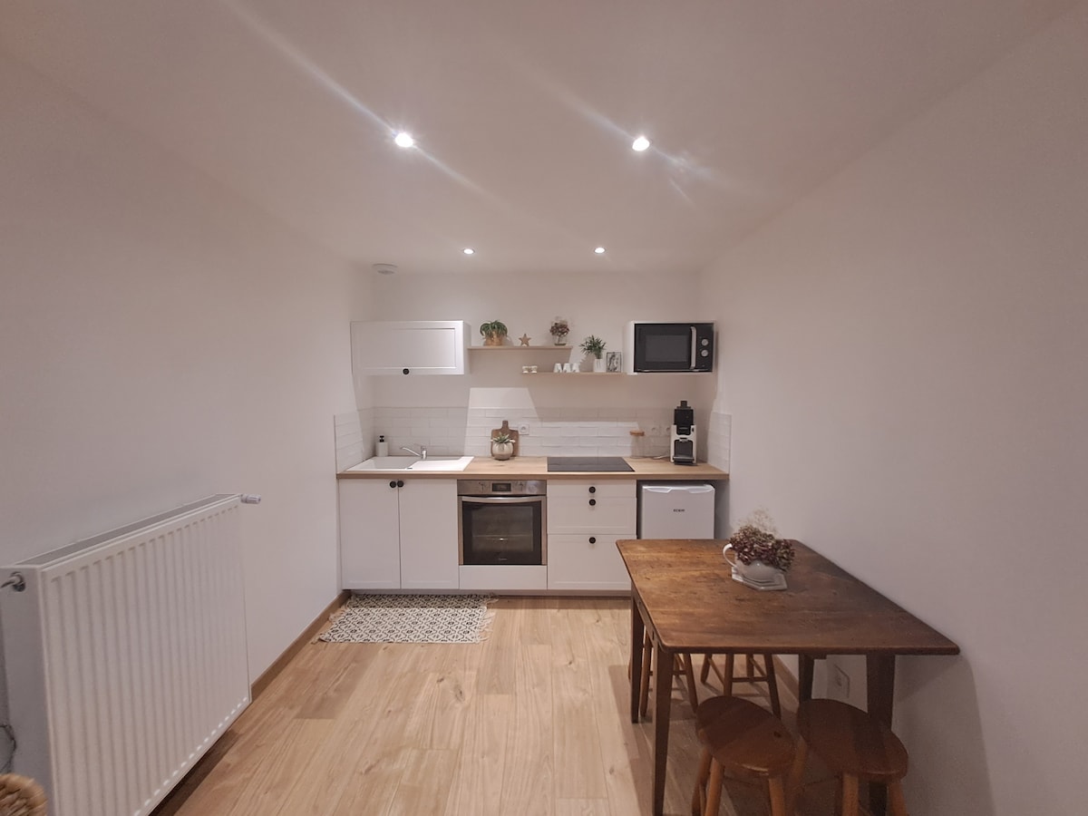 W samym sercu MORESTEL, w pięknej, niezależnej nieruchomości z widokiem na ogród. Ten całkowicie odnowiony apartament posiada sypialnię z dużym łóżkiem o szerokości 160 cm, które zostanie przygotowane na Twoje przybycie, telewizor, łazienkę z toaletą, a także aneks kuchenny (kuchenka mikrofalowa, płyta grzewcza, lodówka, czajnik, naczynia...). Pościel, ręczniki, ściereczki są zapewnione. Oznakowane jako przyjazne dla rowerzystów. Odkryj nasz piękny region, położony w połowie drogi między Lyonem, Grenoble, Chambéry i Annecy.
