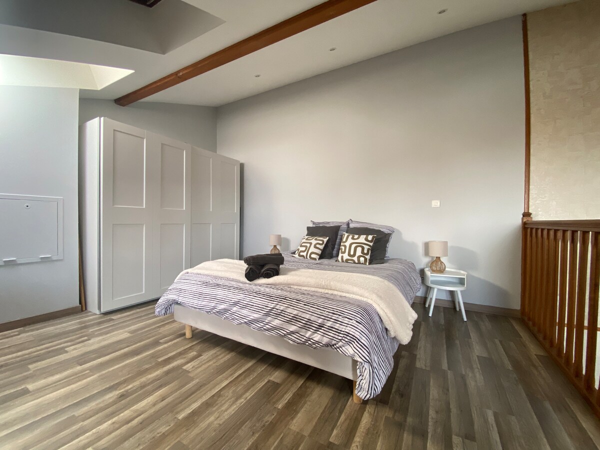 Witamy w naszym uroczym studio typu duplex, prawdziwym kokonie idealnym na przyjemny pobyt. Niezależnie od tego, czy jesteś w podróży służbowej, czy na wakacjach, ciesz się w pełni wyposażonym zakwaterowaniem, które łączy w sobie komfort, niezależność i spokój 10 min od portu lotniczego Lyon-Saint-Exupéry. Zarezerwuj teraz i ciesz się spokojnym i komfortowym pobytem! ⚠️🚨 Uwaga: nieodpowiednie dla osób z niepełnosprawnościami lub trudnościami w poruszaniu się, a także dla dzieci.