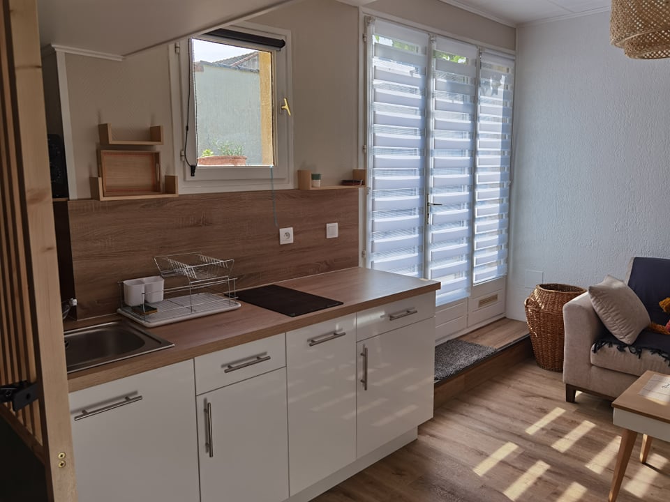 Vous occupez ce charmant studio d'environ 26 m² refait à neuf, avec une climatisation réversible et un ventilateur de plafond très appréciables l’été Sa pièce principale utilisée comme espace de vie et de couchage est calme et spacieuse, équipée d'une télévision et d'une connexion internet. Grâce au lit escamotable une partie de son espace se transforme rapidement et aisément en chambre à coucher Une kitchenette très fonctionnelle et bien équipée complète le logement ainsi qu'une salle de bain