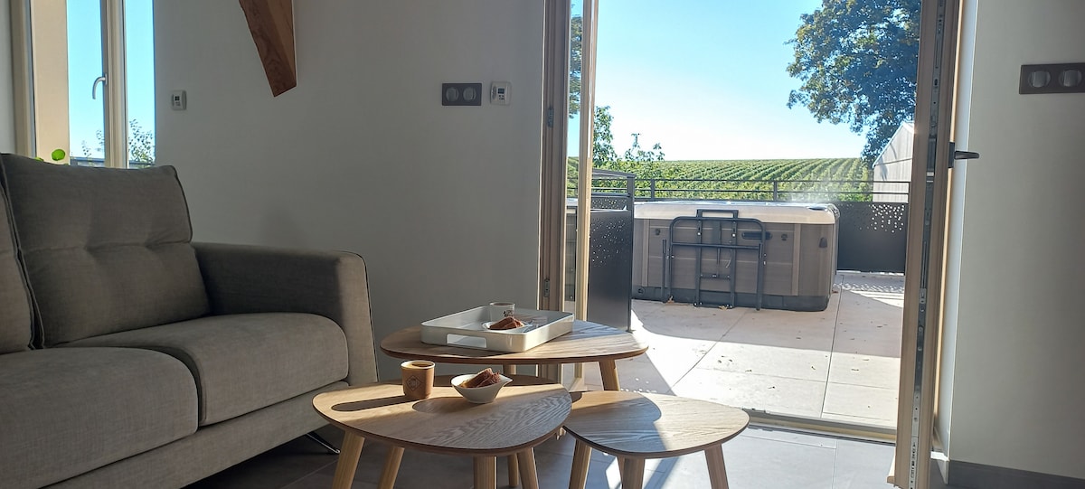 Ciesz się niezapomnianym pobytem dla dwojga w wyjątkowym miejscu w Szampanii. Przestronny i zalany światłem apartament w samym sercu winnic Szampanii. Spa na tarasie na wysokości. Zapierający dech w piersiach widok na winnice. Zrelaksuj się, oddychaj i ciesz się!