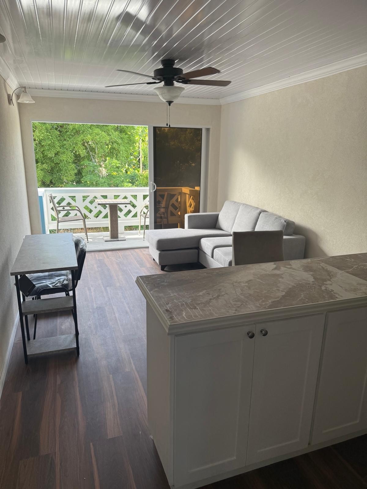 #6 Freshwater is a first floor apartment that offers views of our tropical gardens and the stunning turquoise blue ocean. The apartment is FULLY AIR-CONDITIONED and offers 1 bedroom and 2 bathrooms. From the patio you have views of the ocean and in a few steps you can be on the beach enjoying the white sands between your toes and having a casual swim in the cool calm caribbean waters.