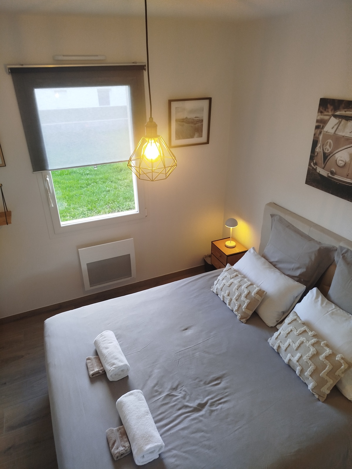 Morze na wsi, pokój położony 800 m od plaży, szlaków pieszych GR8 +Vélo océan, a także sklepów i dworca kolejowego. Pokój z łóżkiem 160 cm, łazienką i prywatnym tarasem. Cena ze śniadaniem. Taras z lodówką i kuchenką mikrofalową do podgrzewania potraw i jedzenia na miejscu z bezpośrednim dostępem do pokoju. Prywatny parking i zamykany garaż na rowery🚲. Zwierzęta nie są akceptowane.