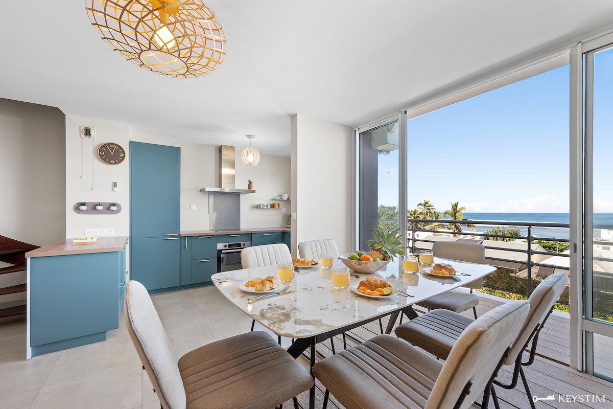 Emplacement idéal pour ce bel appartement situé sur le front de mer, avec la plage, mais aussi toutes les commodités (boulangerie, tabac-presse, poste,restaurants).. et le centre ville accessibles à pied. Le samedi matin vous serez au coeur du marché forain de Saint-Pierre. Composé d'une pièce de vie climatisée avec cuisine équipée, donnant sur la grande terrasse avec vue imprenable sur la mer et d'une grande chambre climatisée vue mer . Sans oublier une place de parking sécurisé en sous-sol