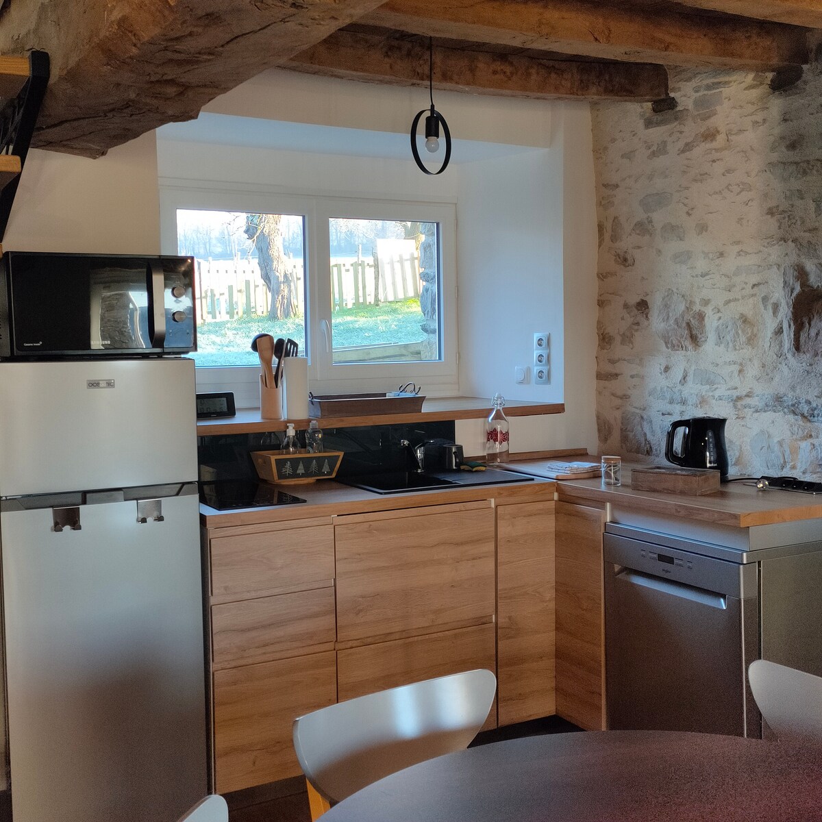 Uroczy dom otwarty na zewnątrz, oferujący wspaniały widok na zachowany teren. Zaprojektowany dla rodzin poszukujących komfortu i relaksu. Otwarta i przyjazna kuchnia jest idealna do spędzania czasu z rodziną. Pokoje z łóżkami o wymiarach 160*190 obiecują spokojny sen po pięknych spacerach po okolicy. Możesz korzystać z tarasu z salonem i jadalnią. Zaledwie 20 minut od Rennes, 1 godzina od plaży, 5 minut od sklepów spożywczych i medycznych.