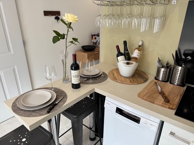 Zapraszamy do skorzystania z małego domu, który został w całości zaprojektowany z myślą o Twoim samopoczuciu i jest przeznaczony na wspaniałe chwile we dwoje, na figlarne popołudnie, wieczór we dwoje. Lub w pojedynkę podczas pobytów służbowych, niezależnie od ich długości. To mieszkanie zachwycajaco zaprojektowane z myślą o nowoczesnym wyposażeniu, wyrafinowaniu i komforcie. Idealnie położony w spokojnym otoczeniu, relaks i odpoczynek pozwolą Ci naładować baterie. Zaledwie 10 minut od wjazdu do Angoulême.
