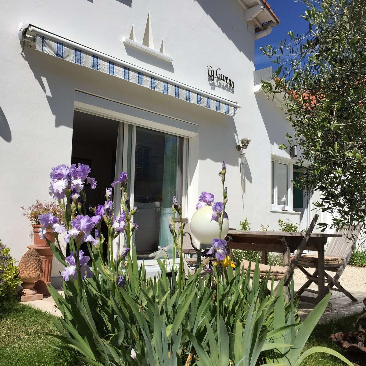 Maison ensoleillée de 135 m², confortable, de plain pied. Grand jardin clos, table extérieure, salon de jardin, transats, parasols...entourent la piscine au sel, chauffée. 2 chambres, dressing, grand séjour, salle de bains avec douche italienne, 2 WC séparés, lingerie. Tous les équipements et appareils sont à disposition pour passer un agréable séjour : climatisation, barbecue, machine à laver, sèche-linge, cafetière à grains, … Garage à vélos fermé. Parking privé. Maison non fumeur.