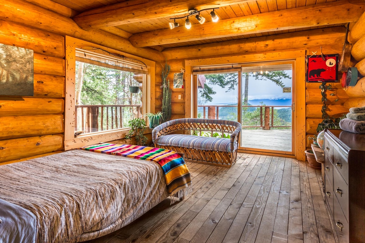 Widoki na góry, ocean i niebo! Raven's Hook to zbudowana przez architekta, nowoczesna chata o powierzchni 300 stóp kwadratowych na 5 akrach łąk obok Sechelt. Cicha i wygodna, ma sklepione sufity i łazienkę przypominającą spa. Śpij jak rozgwiazda na łóżku KING! Gotuj w jasnej kuchni lub grilluj. Zrelaksuj się przy palenisku na prywatnym tarasie. Fantastyczne widoki na ocean, góry i bujne zielone pola! Niesamowite obserwowanie gwiazd. Bogactwo dzikiej przyrody - łosie, orły, obserwowanie ptaków. It's Paradise!