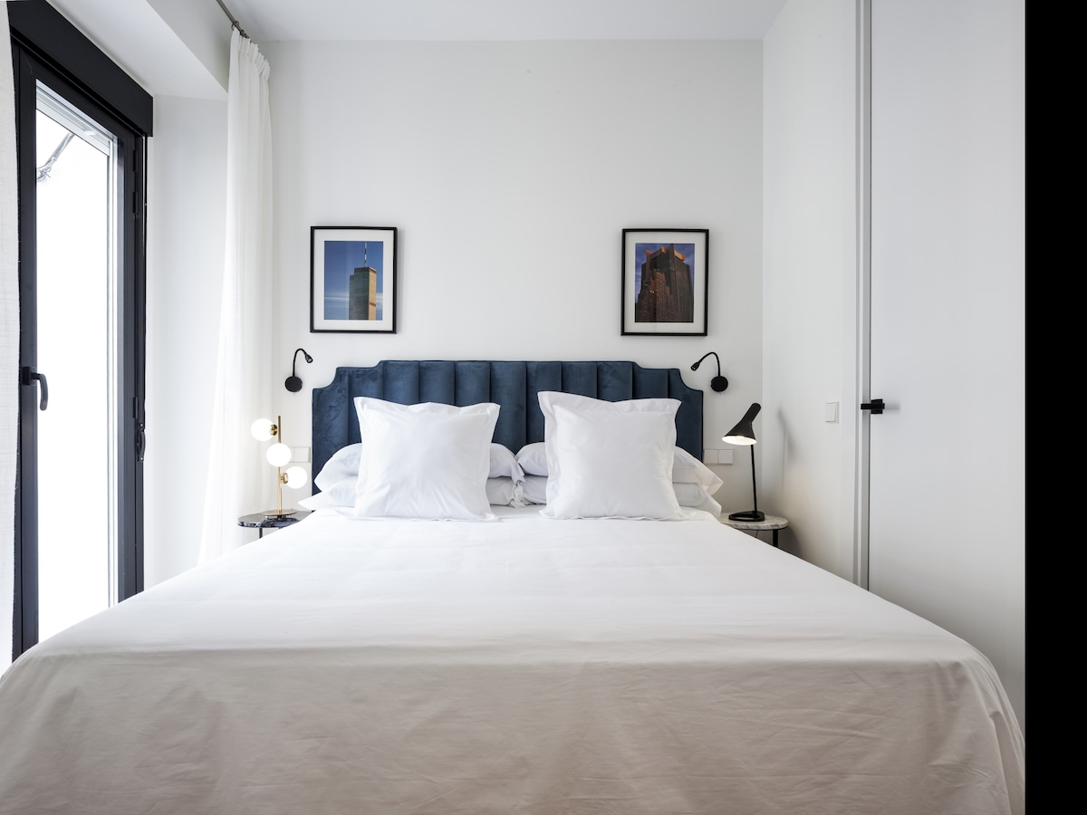 Eric Vökel Atocha Suites presents 60 m² of pure design, featuring two double bedrooms, two bathrooms (including one en suite), a stylish living/dining area, and a fully equipped kitchen. Most importantly, it offers ample space to ensure maximum comfort. Maximum capacity: 6 people (double sofa bed for 2 guests) For stays of 7 nights or more, weekly housekeeping is included. Additional cleaning services can be booked at an extra cost. Bed linen and towels included.