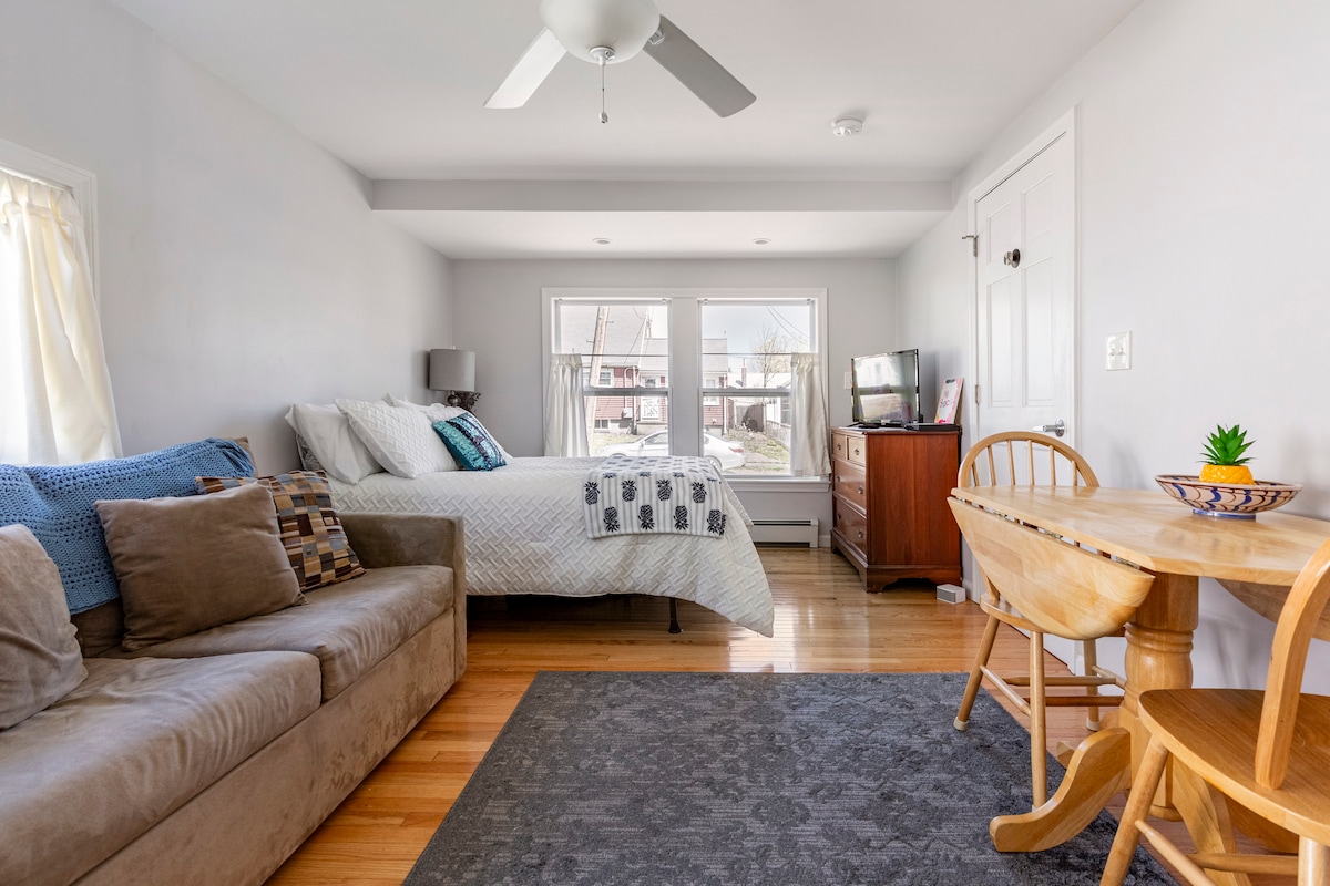 Skorzystaj z kwitnących społeczności północnego brzegu dzięki tej przytulnej przestrzeni zaledwie kilka kroków od centrum Beverly. Ten pokój jest wyposażony w łóżko typu queen size, własną łazienkę 3/4, aneks kuchenny i prywatne wejście z tyłu naszego domu rodzinnego. Ciesz się łatwym chodzeniem na plażę, wiele parków i restauracji oraz dworcem kolejowym, aby podróżować w dowolne miejsce, w tym w Bostonie i centrum Salem.