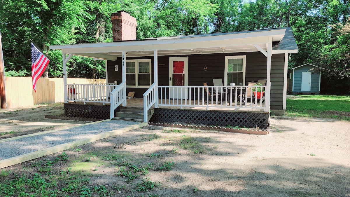 Przyjdź i ciesz się przytulnym i spokojnym pobytem bezpośrednio nad rzeką Cape Fear! Podziwiaj piękno podwórka bez względu na porę roku! Obudź się przy filiżance świeżej kawy i udaj się nad rzekę przez prywatny most, aby podziwiać wschód słońca! Spędź dzień jeżdżąc na rowerach górskich na Cape Fear River Trail tuż przed wejściem do okolicy. Domek Riverfront jest centralnie położony przy I-95 i 295, Methodist University, Fort Bragg i centrum Fayetteville.
