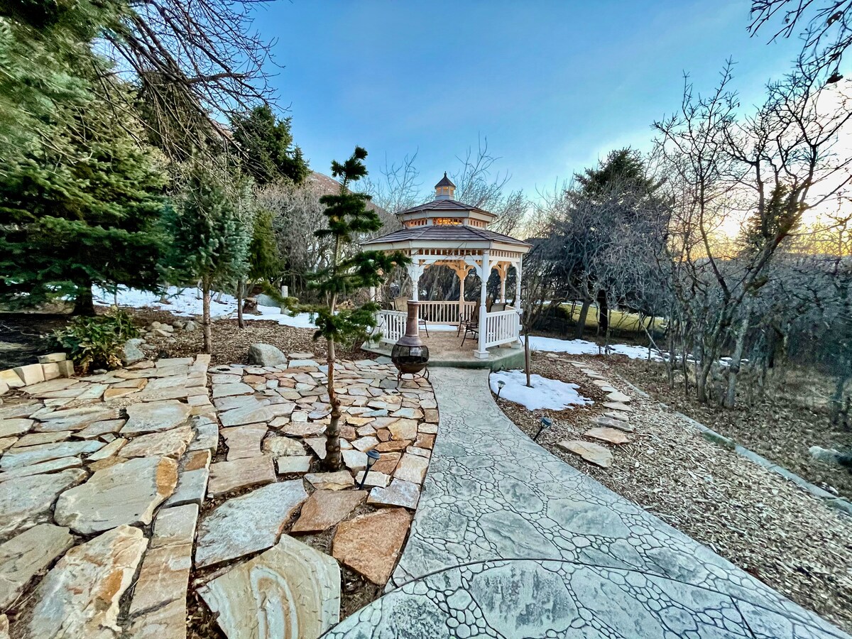 ★1,500 sq.ft of PRIVATE space★Pool table★Large, PRIVATE hot tub★Near Big & Little Cottonwood Canyons★Air Hockey/Ping-Pong, Darts, Poker, Ms PacMan, FoosBall, Basketball Hoop, Hammock★Outdoor Gazebo★1 Gig Fiber Internet*Private BBQ★Outdoor Shower★Comfortable★Fireplace★Large Fully Equipped Kitchen★Dishwasher★Locking Outdoor Ski/Board Storage★Ski Boot/Ski Helmet Dryer★Ski-Clothing Dryer Nook★Foot Massager★3 Bedrooms w/Safe★Bath/Shower w/Heated Towel Rails★Washer/Dryer★Key Pad Entrance★ADA Friendly★