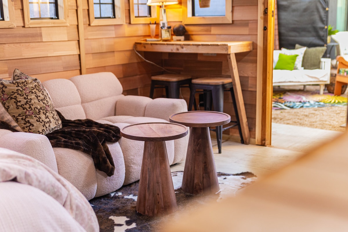 Ucieknij do tej jedynej w swoim rodzaju cedrowej chatki, oferującej prywatne sanktuarium w samym sercu miasta. Przemyślane wzornictwo z nowoczesnym akcentem, duże okna wpuszczające do środka naturalne światło, a jednocześnie przytulna i intymna atmosfera. Na zewnątrz znajduje się prywatne podwórko, gdzie znajdziesz zabytkową wannę z nóżkami/prysznic, idealne do relaksu pod gołym niebem. Wewnątrz elementy industrialne łączą się płynnie z ciepłymi odcieniami cedru, tworząc przyjazną atmosferę idealną zarówno do relaksu, jak i inspiracji.