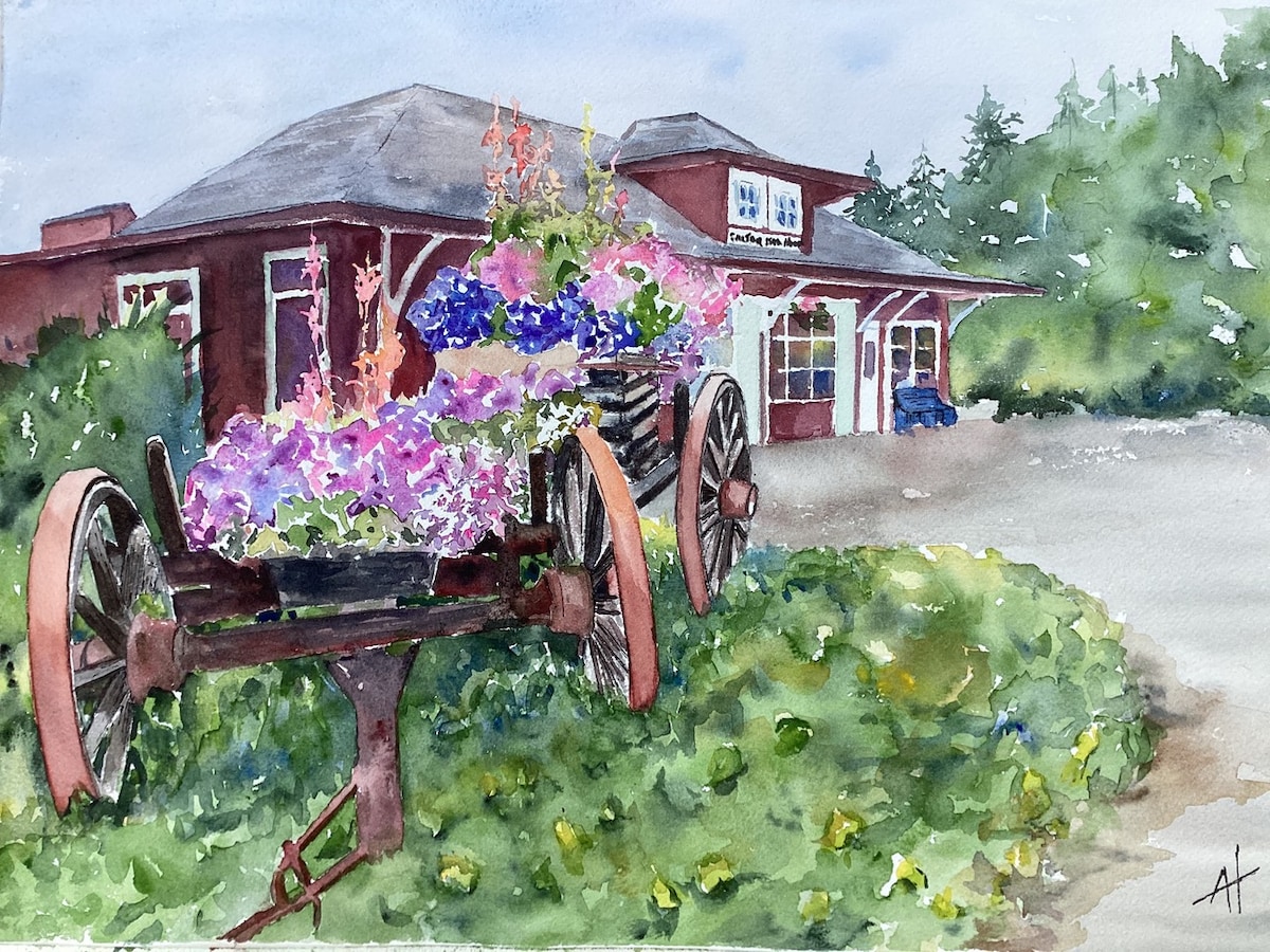 Spokojny i centralnie położony apartament ogrodowy na patio. Obserwuj ptaki, podczas gdy jelenie pasą się w pobliżu w tym parkowym otoczeniu. Krótki spacer do restauracji, sklepów spożywczych, sklepów, plaż, stoisk rolniczych, lokalnych rzemieślników, browarów i wędrówek. Apartament ma prywatne wejście na dużą ogrodzoną posesję dzieloną z właścicielką, która często przebywa w swoim warsztacie lub ogrodzie. Przepraszamy za odgłosy elektronarzędzi i dwa koty, które mają tu swoje królestwo.