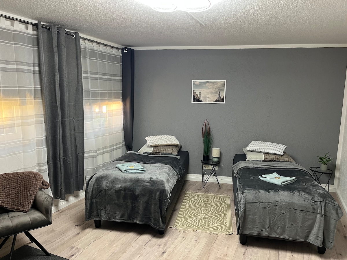Miejska oaza 1 – centralna i nowoczesna (maks. 5 gości) 75 m² na 2. piętrze, 3 minuty do starego miasta! • 2 sypialnie z 2 pojedynczymi łóżkami sprężynowymi (90x200, łączone) • Salon z rozkładaną sofą (140 x 200) • W pełni wyposażone: w pełni wyposażona kuchnia, pralka / łazienka z wanną i pisuar • 3 telewizory Smart TV z HD+ • Pościel, ręczniki, sprzątanie końcowe w cenie Bezpłatny parking w okolicy – idealny dla rodzin i mechaników! Poczujesz się tu jak w domu