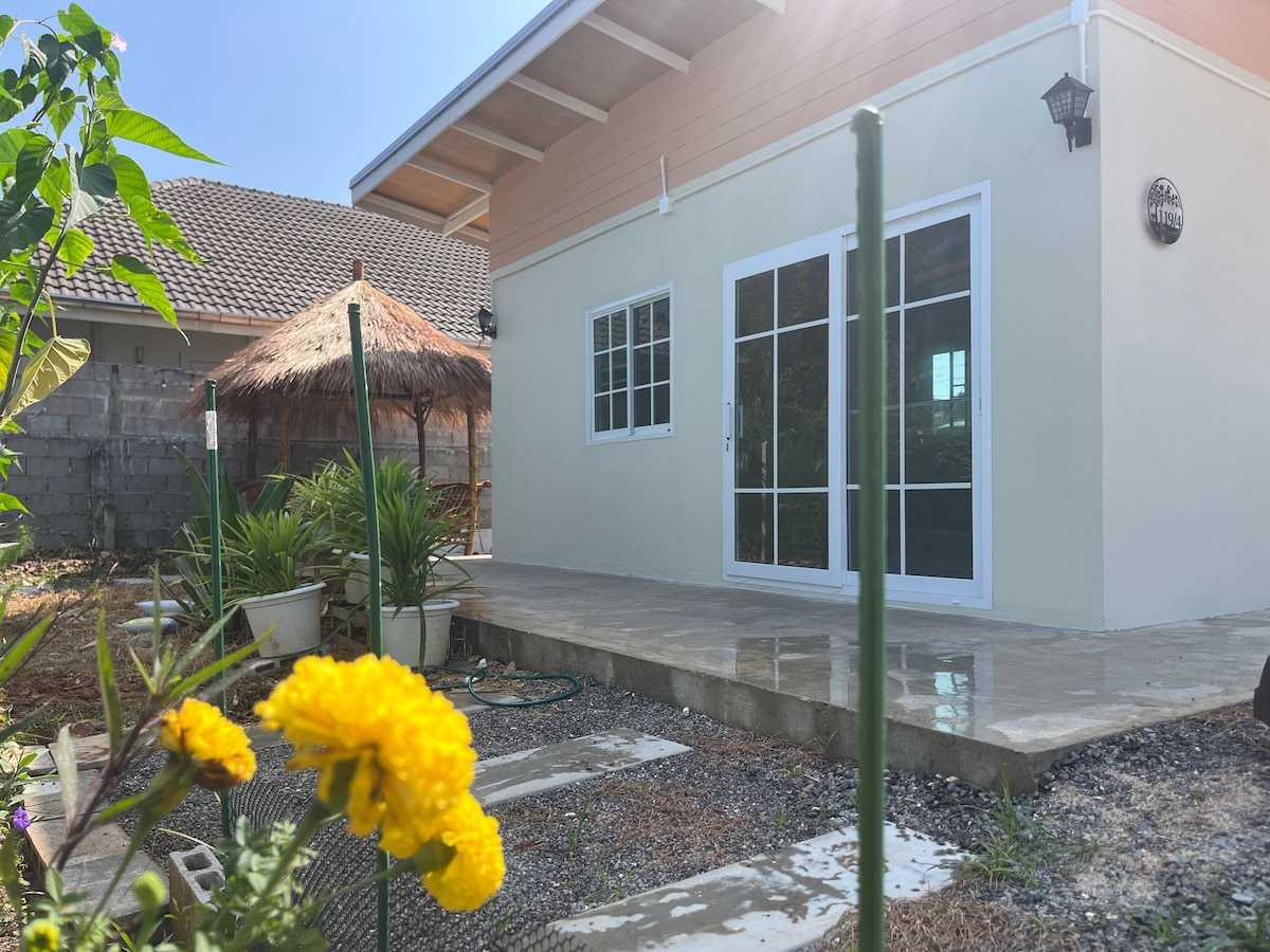 Nice Twin-House in a beautiful surrounding, big balcony and open area on the second floor with Mountainview. Close to the National Park SAM ROI YOD, and 3-4 km to Dolphin Bay/Beach. One Half of the House is privately yours, Own Entry, No Resort, Nice tropical garden with surrounding wall, perfect for children and Long-stay,. Two big Master Bedrooms, both with A/C. additional there is one small Emergency-bedroom only with fans. Wifi 5G