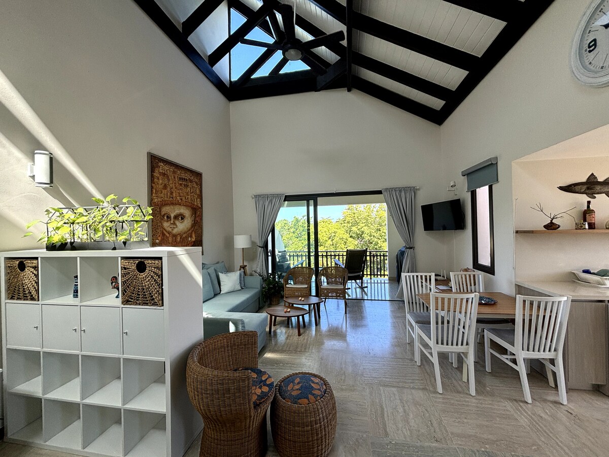 Twoje miejsce na prawdziwy relaks w Portillo. Ten apartament jest dwupoziomowy w stylu loftu ze schodami, meblami ogrodowymi, z widokiem na góry w prywatnym mieszkaniu butikowym. Ciesz się swoim momento solo, pary lub małe rodziny 4-osobowe są mile widziane. Pralnia jest wewnątrz apartamentu, piękna nowa włoska kuchnia na zamówienie 2022 nowy taras na dachu z widokiem na wschody słońca, przyroda wszędzie. Widok na słońce i lagunę, spokojna i cicha okolica, przyzwoite środowisko, Portillo Beach Residences to przyjazna społeczność.