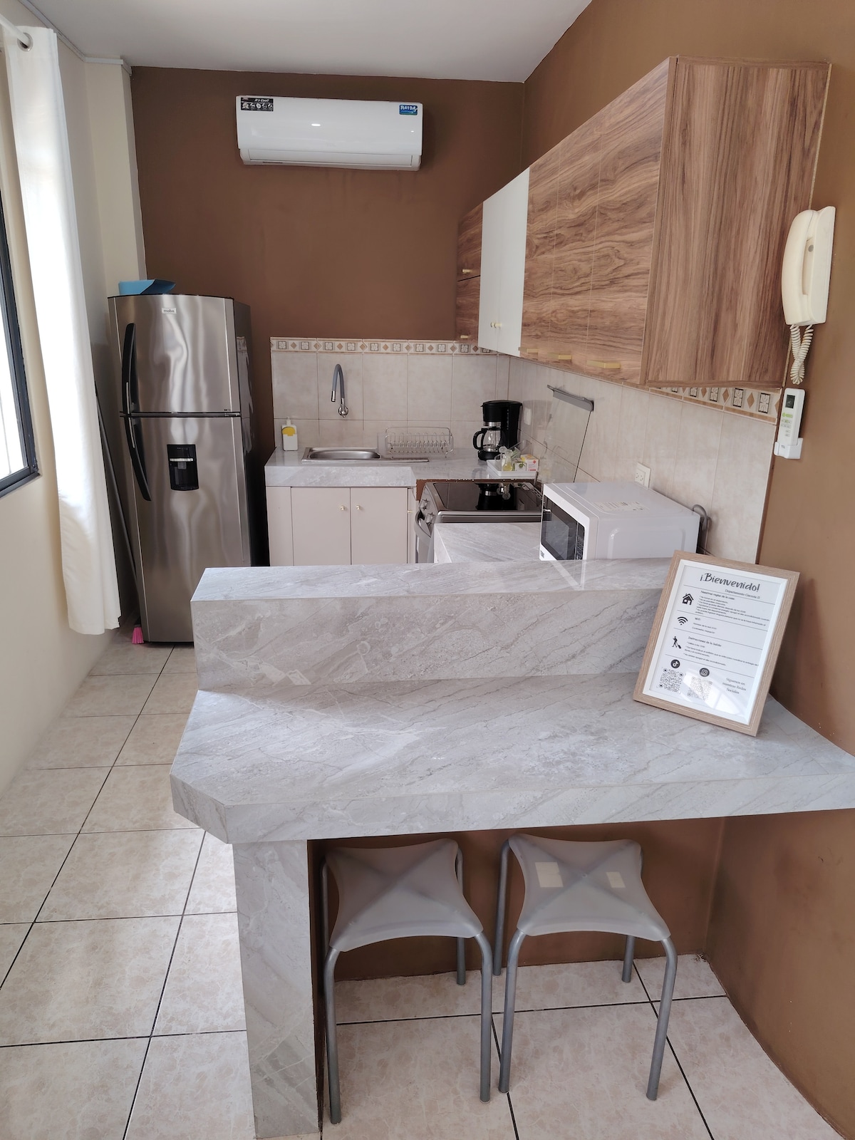 Apartament z dwiema sypialniami przed lotniskiem. Znajduje się na piętrze 2. Każdy pokój wyposażony jest w telewizor, klimatyzację, prywatną łazienkę, prysznic z hydromasażem, Directv, Wi-Fi. W pełni wyposażona kuchnia, jadalnia, salon i Parqueo.