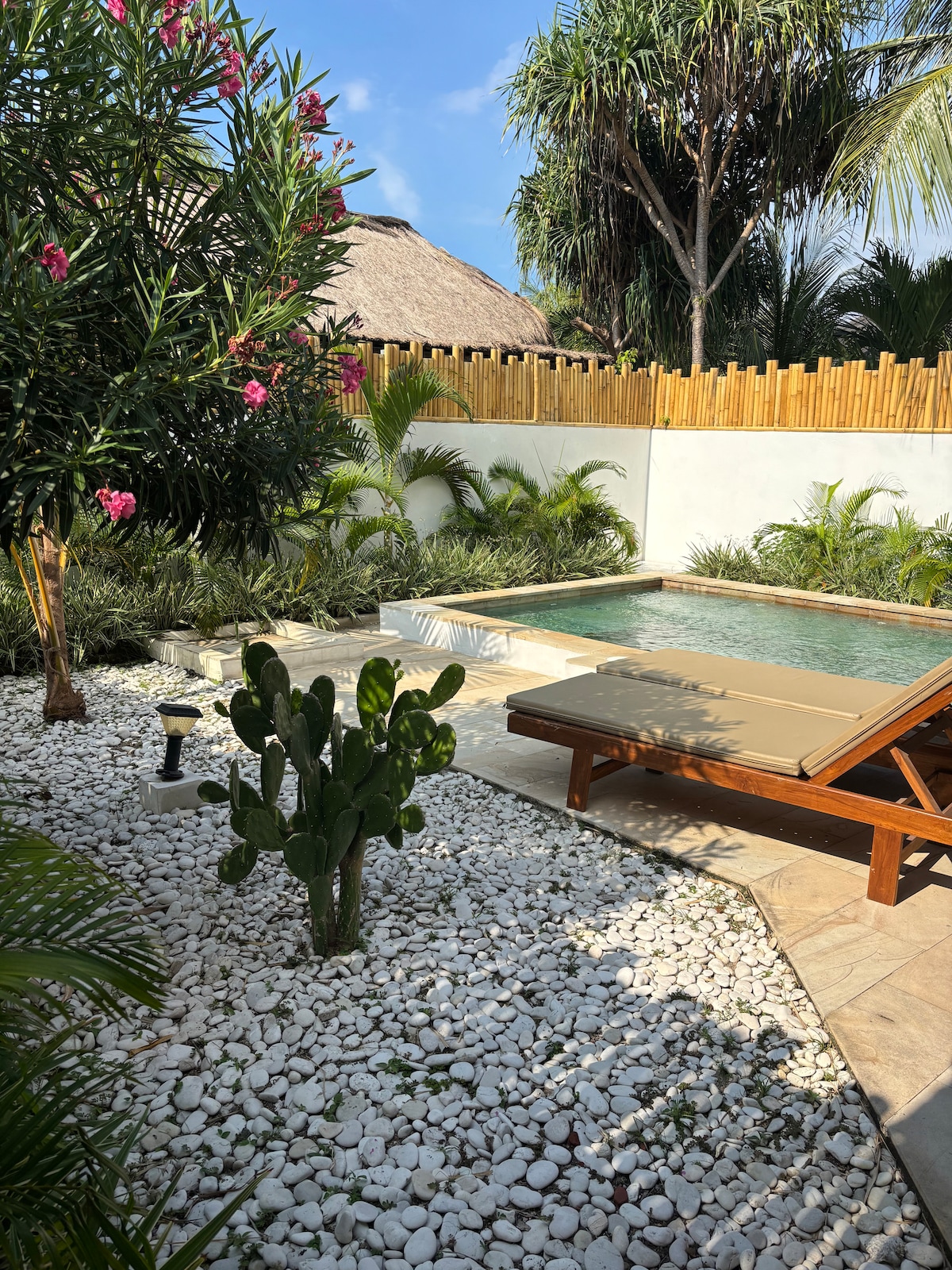 Welcome to Villa Teman, your private sanctuary on Gili Air. A brand-new one-bedroom villa with warm teak finishes, private pool, and tropical garden. Just a five-minute walk from the beach and sunsets, the perfect place to unwind and embrace slow island living. INFORMATION: Nearby construction is currently ongoing. The remaining work will take place only during daytime hours, from 8am to 5pm. We prefer to inform our guests in advance so you can book with full transparency.