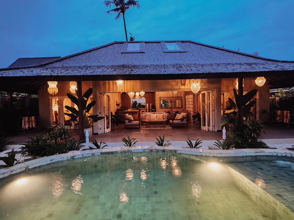 Modern & western 3 bedroom villa - like a home away from home! Large rooms with AC and strong wifi, 200 m walking distance from the beach & sunset. Restaurants & shops are in walking distance. The luxurious, spacious and family friendly villa has a big pool and garden with swing for children and a rooftop terasse with hot tub & view on the mountains of Lombok. The open kitchen & living area with sofa and dining table is perfect to hangout, relax and cook and offers everything you need!