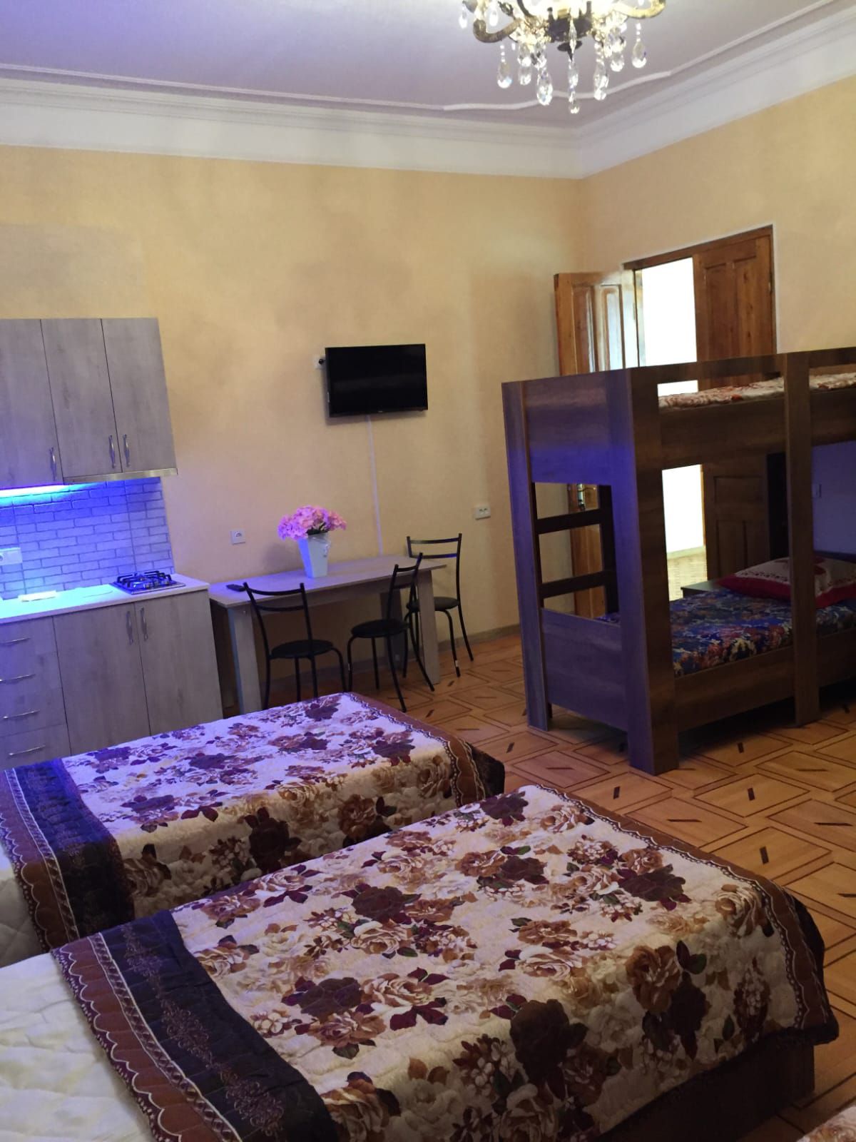 A cozy and comfortable apartment, equipped with all necessary inventory and appliances. The apartment is disinfected when each guest leaves. Provided with linens and towels. Has an unusual view from the balcony and a very good location - 9 April Street, # 1. On foot, you will need 10 minutes to park, 15 minutes. To the baths and to the city center. The apartment has supermarkets, a pharmacy, a bakery, a Georgian post office and a bus stop.