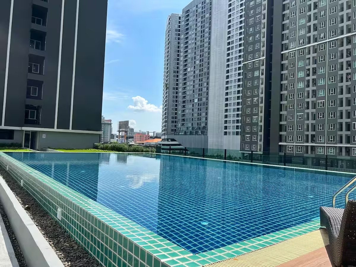 Minimal-style room with access to a rooftop swimming pool. Located near Central Bangna, MRT Si-Iam, BITEC Bangna, and 10 minutes to BTS Udom-Suk as well as a 24-hour convenience store. Our lobby, there is Pokhavadi Coffee, an organic coffee shop with food and beverages.