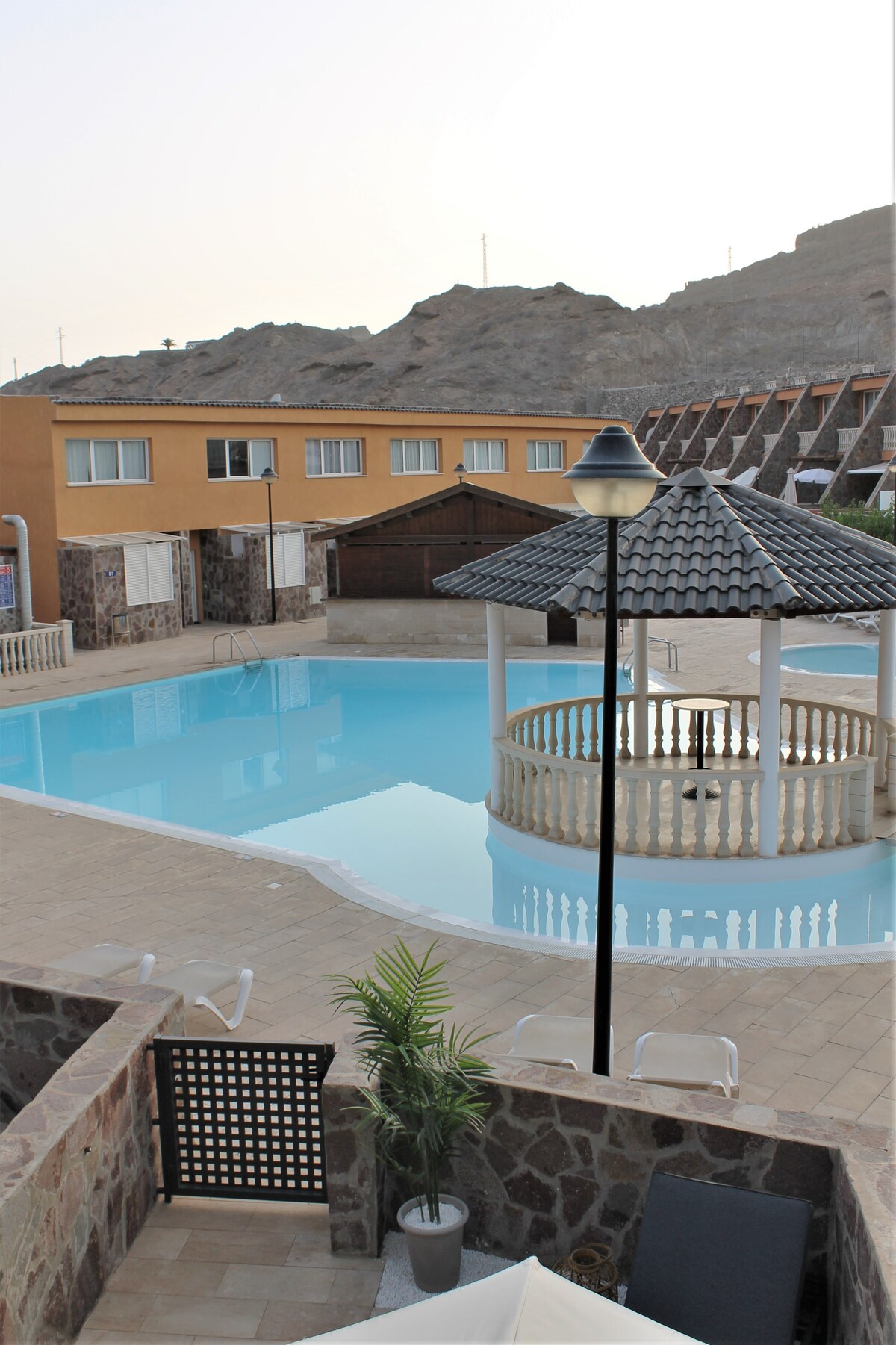 W tym miejscu można oddychać spokojem: zrelaksuj się z całą rodziną, w parze lub w pojedynkę! Jest to piękny apartament dwupoziomowy z tarasem na dole i na górze. W kompleksie bungalowów z niewielką liczbą sąsiadów znajduje się piękny basen. 1 sypialnia z klimatyzacją i podwójnym łóżkiem, 1 pełna łazienka, 1 mała kuchnia, 1 salon z rozkładaną sofą. Przy kompleksie znajduje się duży, bezpłatny parking. Idealna lokalizacja w samym sercu Maspalomas i Meloneras.
