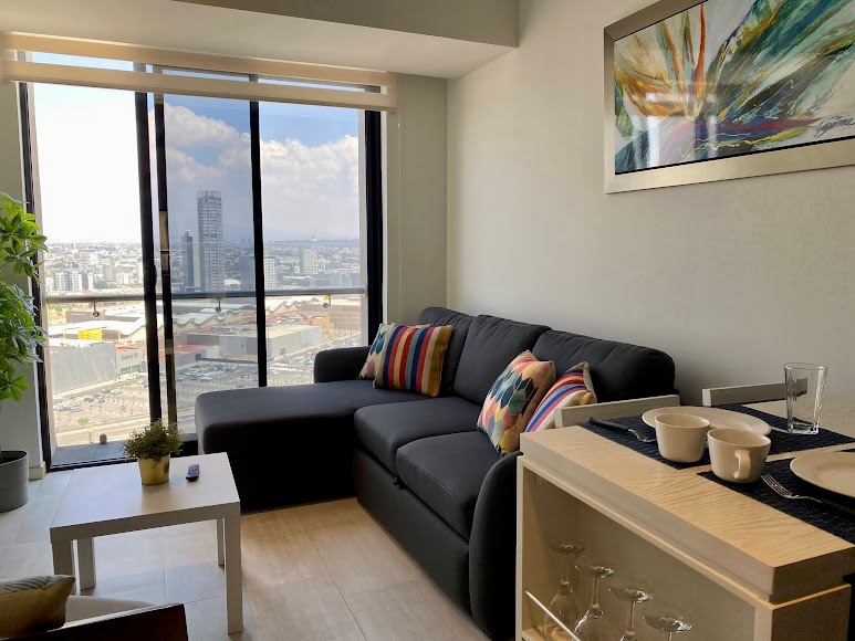 Nowy, w pełni wyposażony apartament obok Lomas de Angelópolis, 8 minut od Terminalu Paseo Destino, w pobliżu najważniejszych uniwersytetów w Puebla, a także centrów handlowych i restauracji. Posiada w pełni wyposażoną kuchnię, lodówkę, kuchenkę mikrofalową, ekspres do kawy, przybory kuchenne, bar kuchenny z ławkami, telewizor 58" smart TV (Netflix, Prime video, Disney), szybkie łącze internetowe (60 Mbps). Apartament znajduje się w prywatnym kompleksie z całodobową ochroną.