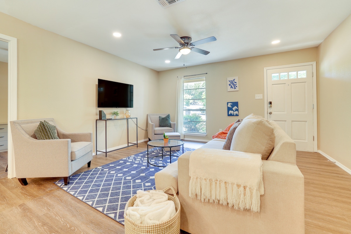 Niech urok tego pełnego udogodnień wynajem wakacyjny zapewni Ci miejsce na kolejny południowo-środkowy wypad w Teksasie. Położony w pobliżu lokalnych atrakcji i wypełniony wystrojem w stylu retro, ten dupleks jest idealny dla tych, którzy chcą z łatwością poznać San Antonio. Spędź czas na zabawie w lokalnych parkach wodnych, zwiedzaniu historycznych miejsc lub zwiedzaniu atrakcji na świeżym powietrzu. Wróć do tego spokojnego miejsca z 2 sypialniami i 1 łazienką, aby zanurzyć się w wannie z hydromasażem, zebrać się wokół chiminea lub zjeść posiłek na grillu gazowym.