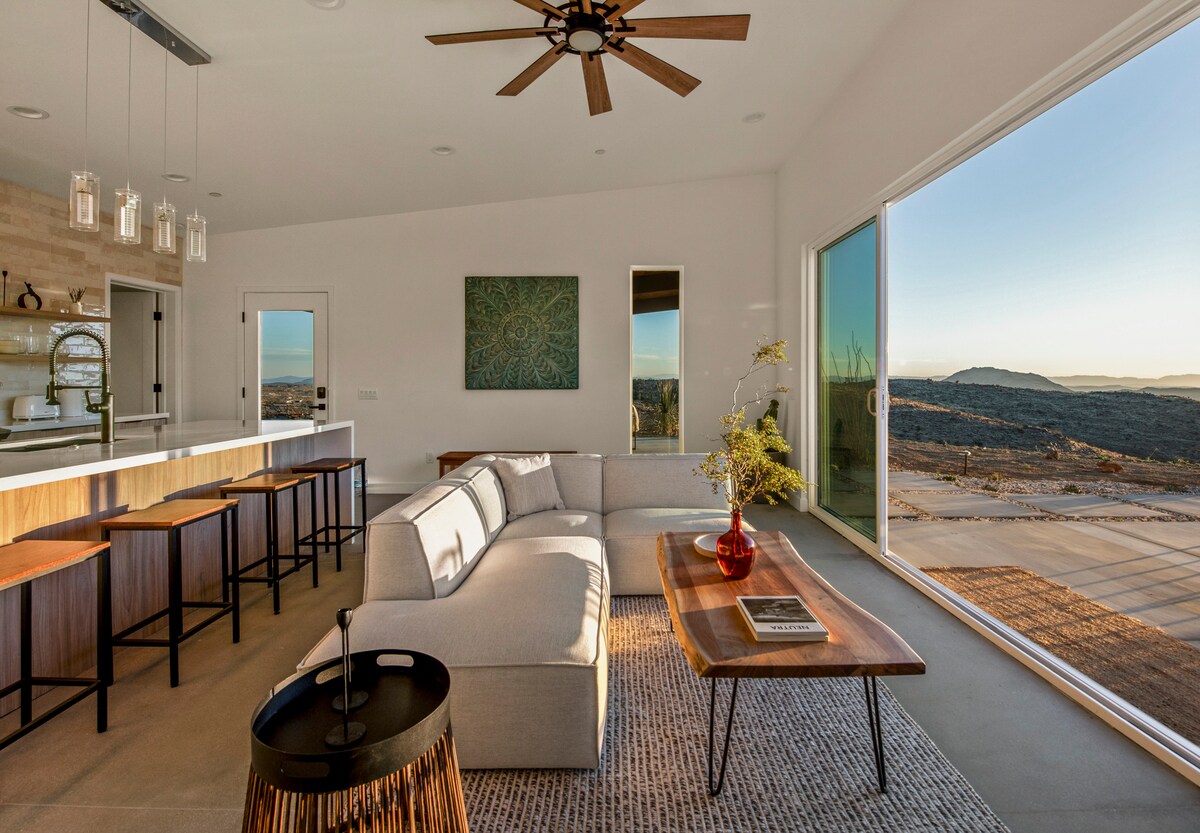 DLATEGO właśnie przyjeżdżasz na pustynię. Wysoko nad Yucca Valley znajdziesz The Edge, nasz nowoczesny i stylowy wypad na pustynię z 2 łóżkami/2 łazienkami. Jest osobliwie odosobniony na działce o powierzchni 2,5 akra, ale tylko kilka minut od miasta i Parku Narodowego Joshua Tree. Odkryj lokalne atrakcje, wędruj z własnego podwórka lub odpoczywaj dzień w naszej luksusowej wannie z hydromasażem, podziwiając NAJLEPSZY WIDOK na High Desert! ✔ 2 sypialnie z łóżkiem typu King ✔ Pełna kuchnia ✔Spa Miejsce na✔ ognisko ✔Hamaki ✔Grill ✔ Szybkie Wi-Fi Zobacz więcej poniżej!