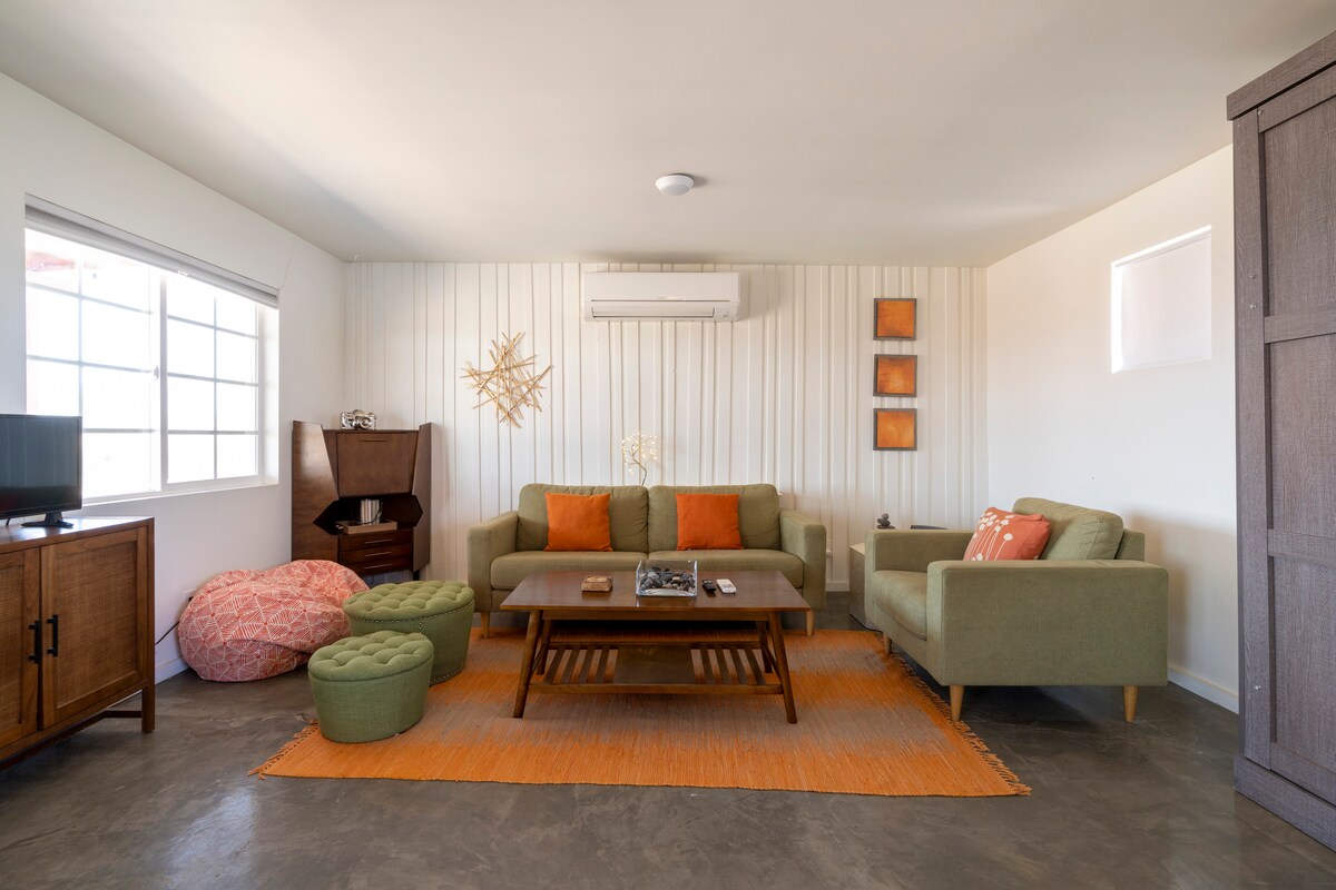 A private high-desert sanctuary designed for deep rest, reconnection, and slow mornings beneath wide open Joshua Tree skies. Soak in the cedar hot tub under the stars, plunge cold at sunrise, and unwind by the fire as the desert goes quiet around you. Thoughtfully designed with bespoke decor, linen sheets, handcrafted ceramics, curated sound, and fast Wi-Fi. Quiet, peaceful, and intentionally crafted for a rare, restorative desert escape. Reconnect with nature, with yourself, or someone you love