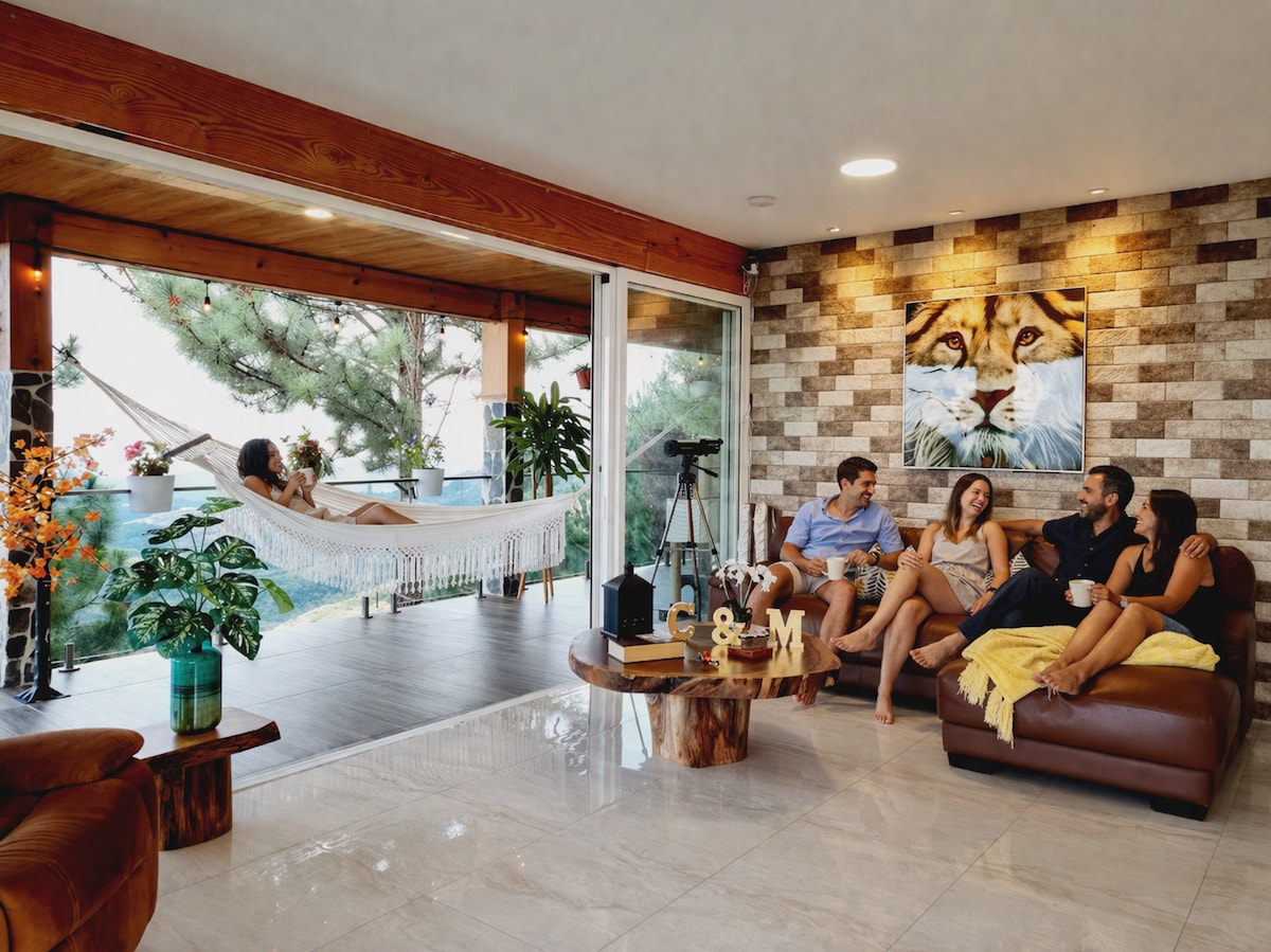 Jesteśmy domem wiejskim dla maksymalnie 13 osób na ogrodzonej działce o powierzchni 1000 m² na szczycie Valle Los Lirios, Las Uvas de San Carlos, zachowując poczucie izolacji. Znajduje się w okolicy z całodobowym monitoringiem i garażem bezpieczeństwa. Z widokiem na morze, Valle de Antón i lasy. Zrelaksuj się w jacuzzi z hydromasażem i dżetami lub w basenie. Mamy hamaki, grilla, stół do ping-ponga, ognisko i asystenta głosowego Alexę. Na miejscu jest parking dla sześciu samochodów.