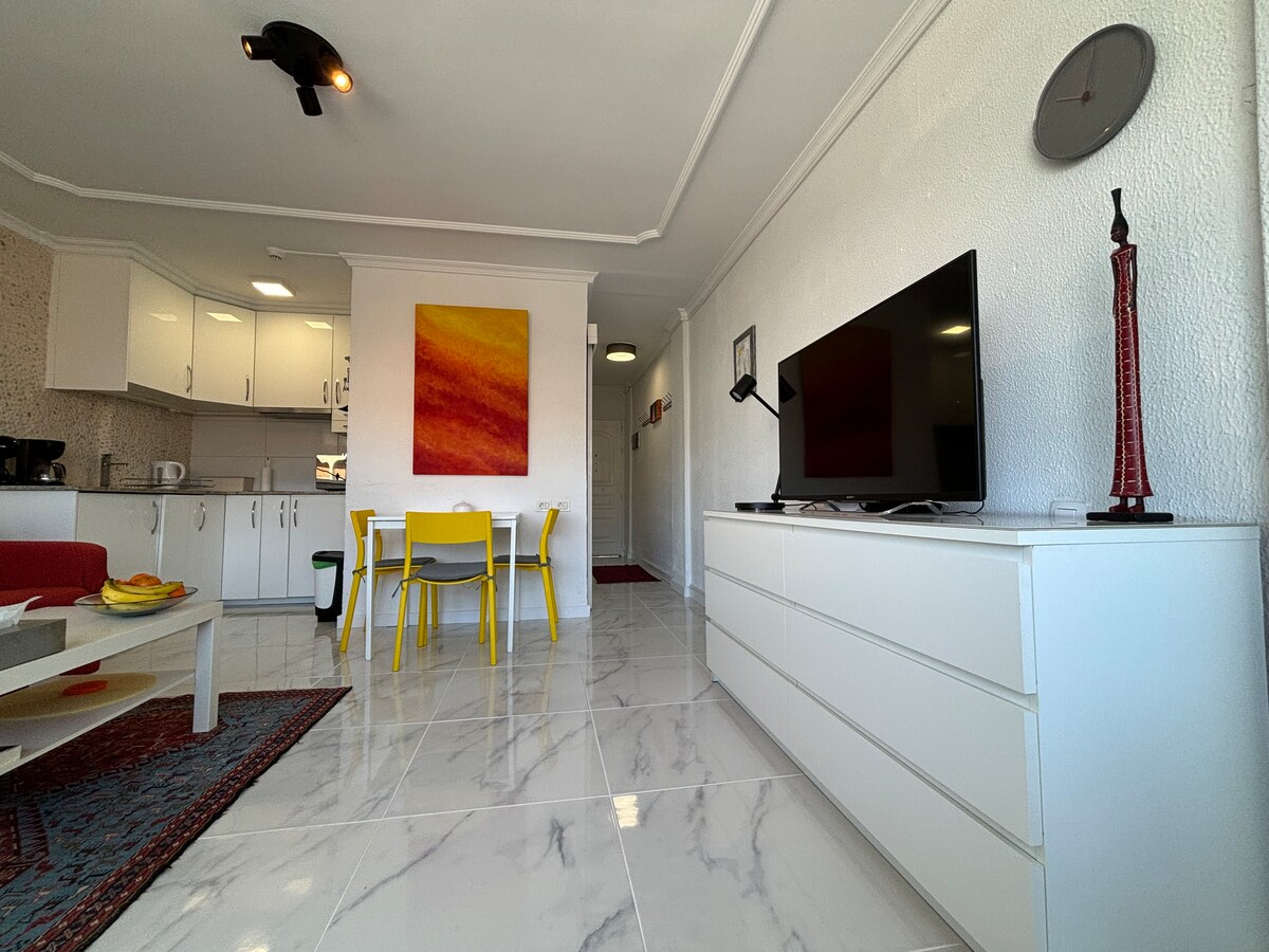 Zapraszamy w samym sercu Playa del Inglés, w bardzo dobrze położonym kompleksie apartamentów zaledwie kilka metrów od plaży Maspalomas i zaledwie kilka minut od wspaniałych Wydm Maspalomas, Jesteśmy blisko do wszelkiego rodzaju usług, takich jak restauracje, supermarkety i wiele innych. Studio jest całkowicie odnowiony w nowoczesnym stylu i ma salon, oddzielną kuchnię, łazienkę i duży balkon z widokiem, ma podwójne łóżko i rozkładaną sofą, WI-FI wliczone w cenę.