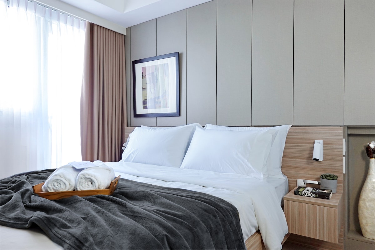 Witamy w The Meydan Suites at Azure North, studio inspirowanym stylem japandi w San Fernando w Pampanga. Zaledwie 1,5 godziny od Manili, nasze przestronne studio z 2 sypialniami jest wyposażone w pełną kuchnię, jedną łazienkę i prywatny balkon po cichej stronie Azure. Za 200 PHP za osobę za zmianę możesz korzystać z udogodnień w stylu kurortu, takich jak basen z falami, basen na plaży i obiekty rekreacyjne. To idealne miejsce na wypoczynek dla par, rodzin lub barkady.