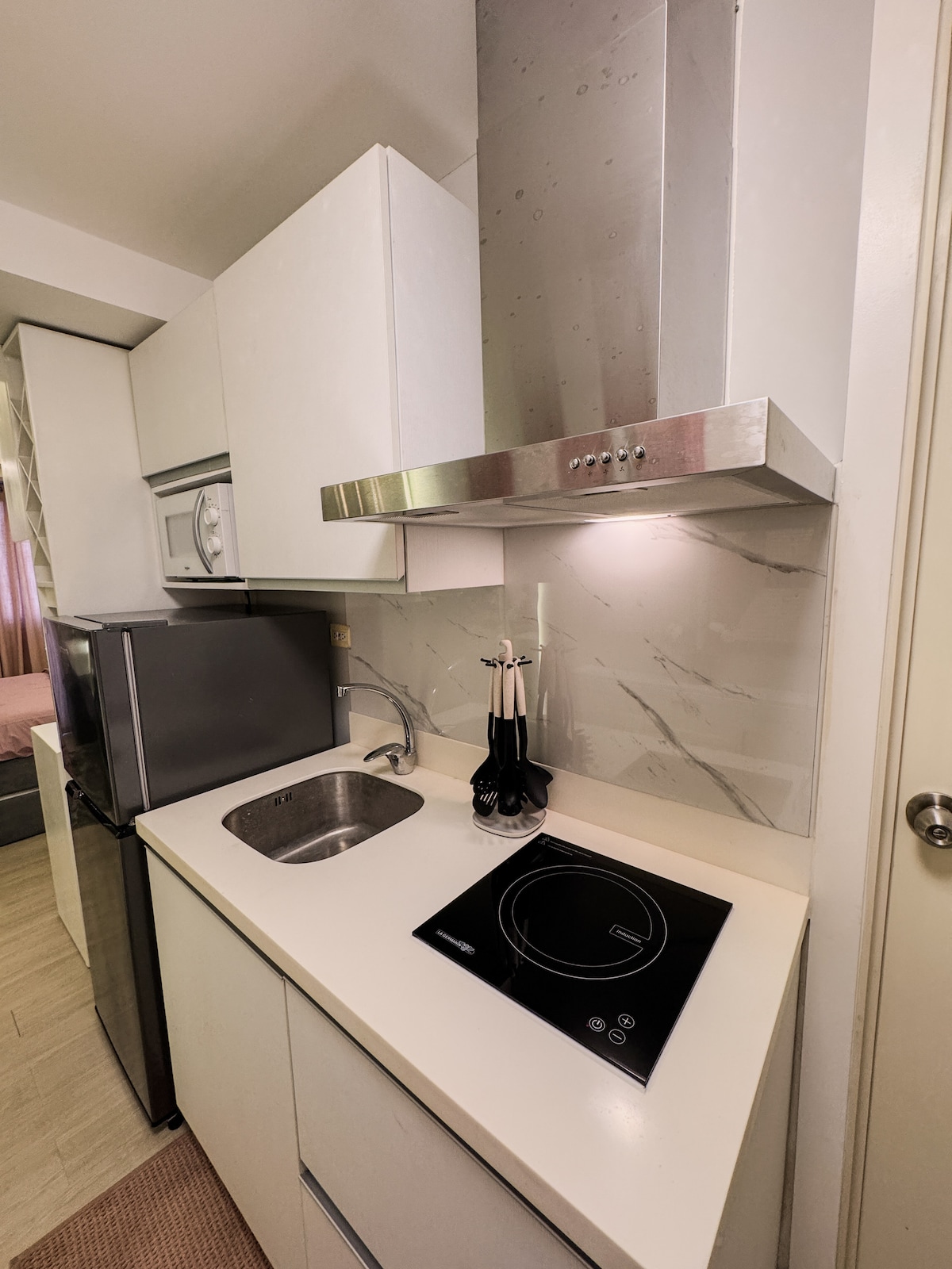 Welcome to The Meydan Suites at Azure North, a Japandi-inspired studio retreat in San Fernando, Pampanga. Just 1.5 hours from Manila, our spacious 2-bed studio comes with a full kitchen, one bath, and a private balcony on the quiet side of Azure. For ₱200 per guest per shift, you can enjoy resort-style amenities including the wave pool, the beach pool, and leisure facilities. It is the perfect sulit escape for couples, families, or barkada.