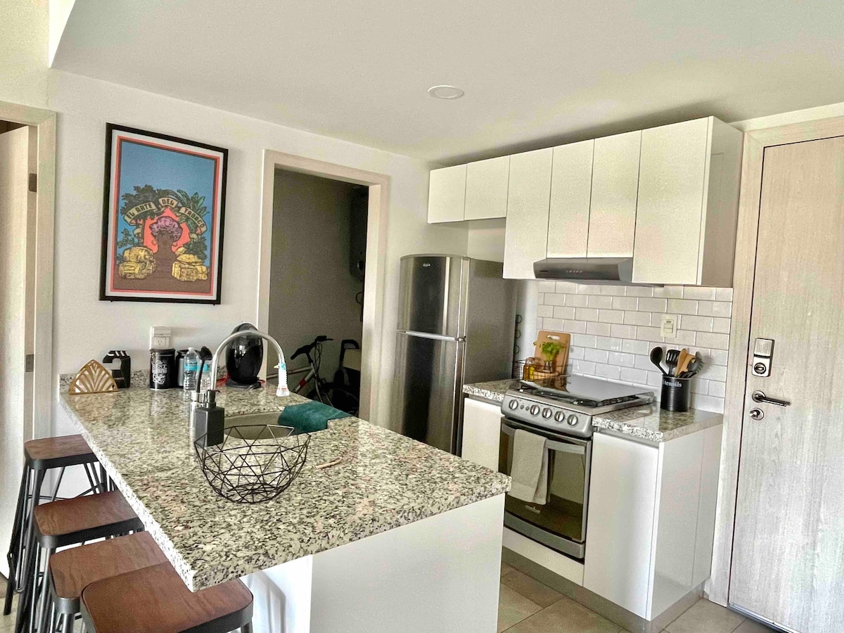 Bright, modern high-rise space on the 18th floor with open city views. Ideal for couples, friends, and relaxed longer stays Rooftop with panoramic view 360°. 3 Queen beds for up to 6 guests Equipped kitchen Large-capacity washer and dryer Electric blinds and high-speed Wi-Fi for home office Enjoy a 24/7 GYM, and in-building parking for 2 cars Pet-friendly building with security service and 24/7 security cameras Quick access to Cholula, Angelópolis, and Val’Quirico