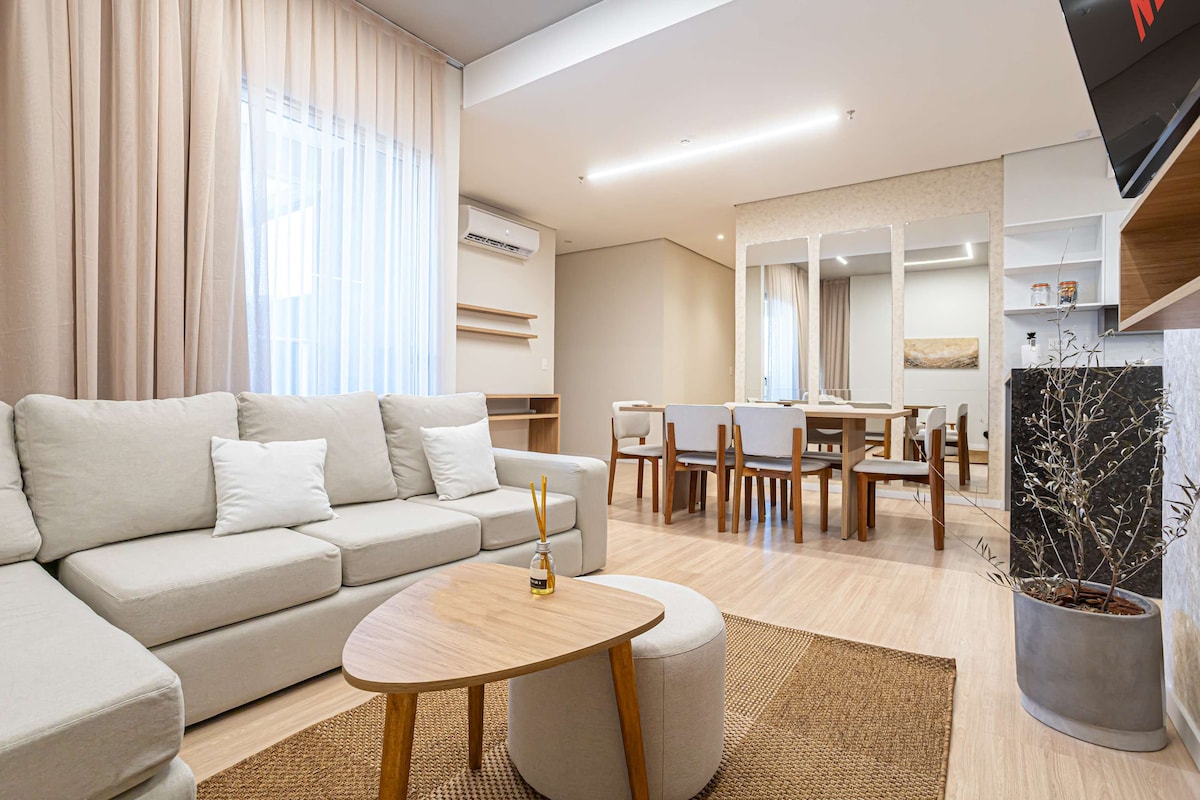 Zatrzymaj się w najlepszej okolicy Asunción, kilka kroków od Paseo La Galería i Shopping del Sol. Ten luksusowy apartament na 15. piętrze oferuje panoramiczne widoki, chłodzone łóżko typu queen, 65-calowy telewizor NeoQLED z systemem nagłośnienia oraz w pełni wyposażoną kuchnię idealną na dłuższe pobyty. Korzystaj ze spa z sauną, jacuzzi, gabinetem masażu, basenem na dachu, siłownią, przestrzenią coworkingową, salonem do czytania, pokojem zabaw, miejscem do grillowania, parkingiem z obsługą i całodobową ochroną w wysokiej klasy wieżowcu.