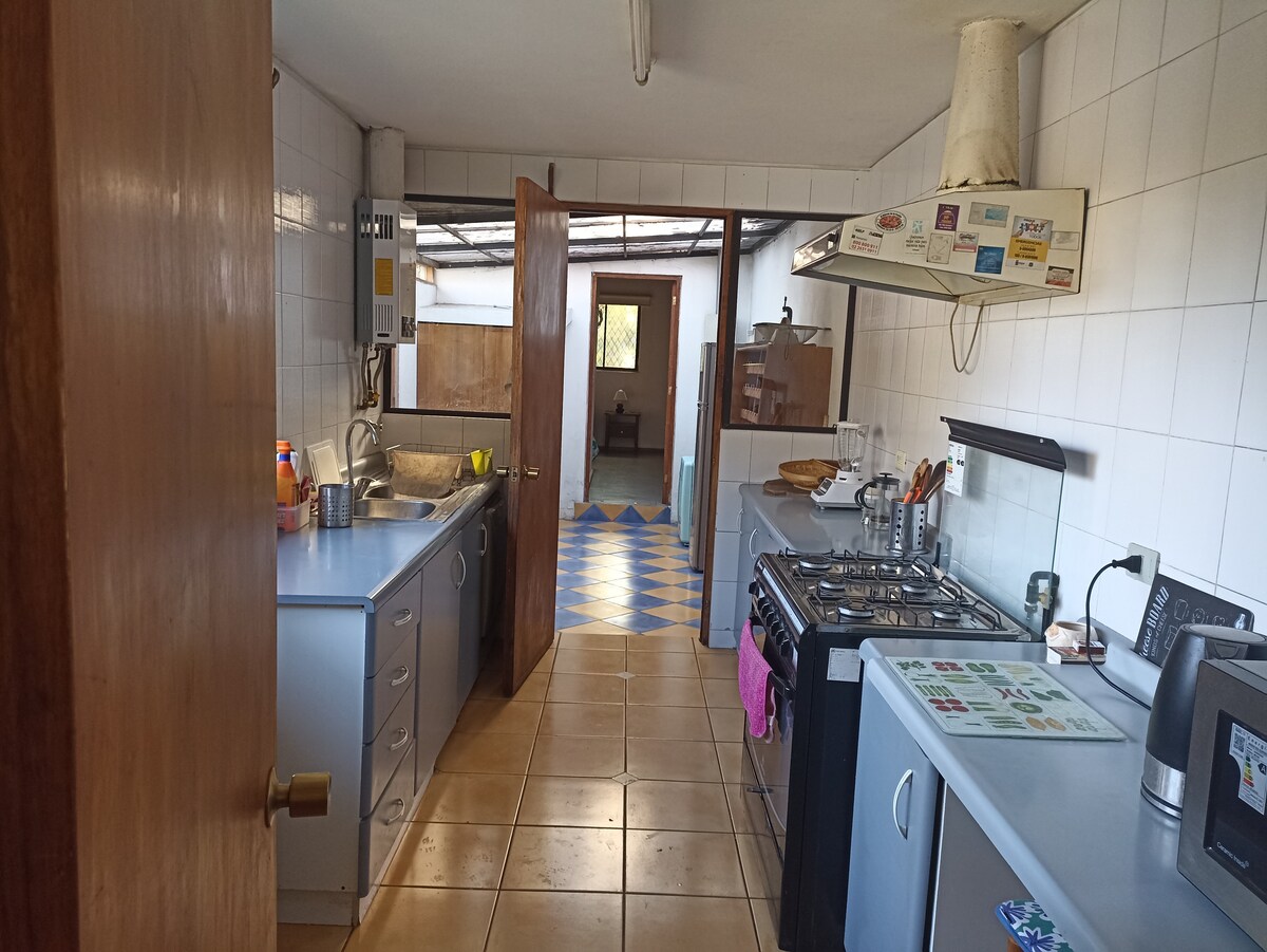 Dom rodzinny, wyrzeźbiony i bardzo cichy na wsi, ze wszystkimi towarami w odległości zaledwie 2 km od wioski Champa (Paine city), w którym znajdują się sklepy oferujące wszystko, czego potrzebujesz. Tylko godzinę drogi od Santiago i 2 km autostrady 5 Sur. Na 4 km od stacji Hospital Station of Metrotren Santiago-Rancagua. 20 km od jeziora Aculeo i parku przyrody Altos de Cantillana. Kompletne wyposażenie kuchni i zadaszony taras z grillem Pościel, koce, ręczniki i usługa sprzątania są wliczone w cenę.