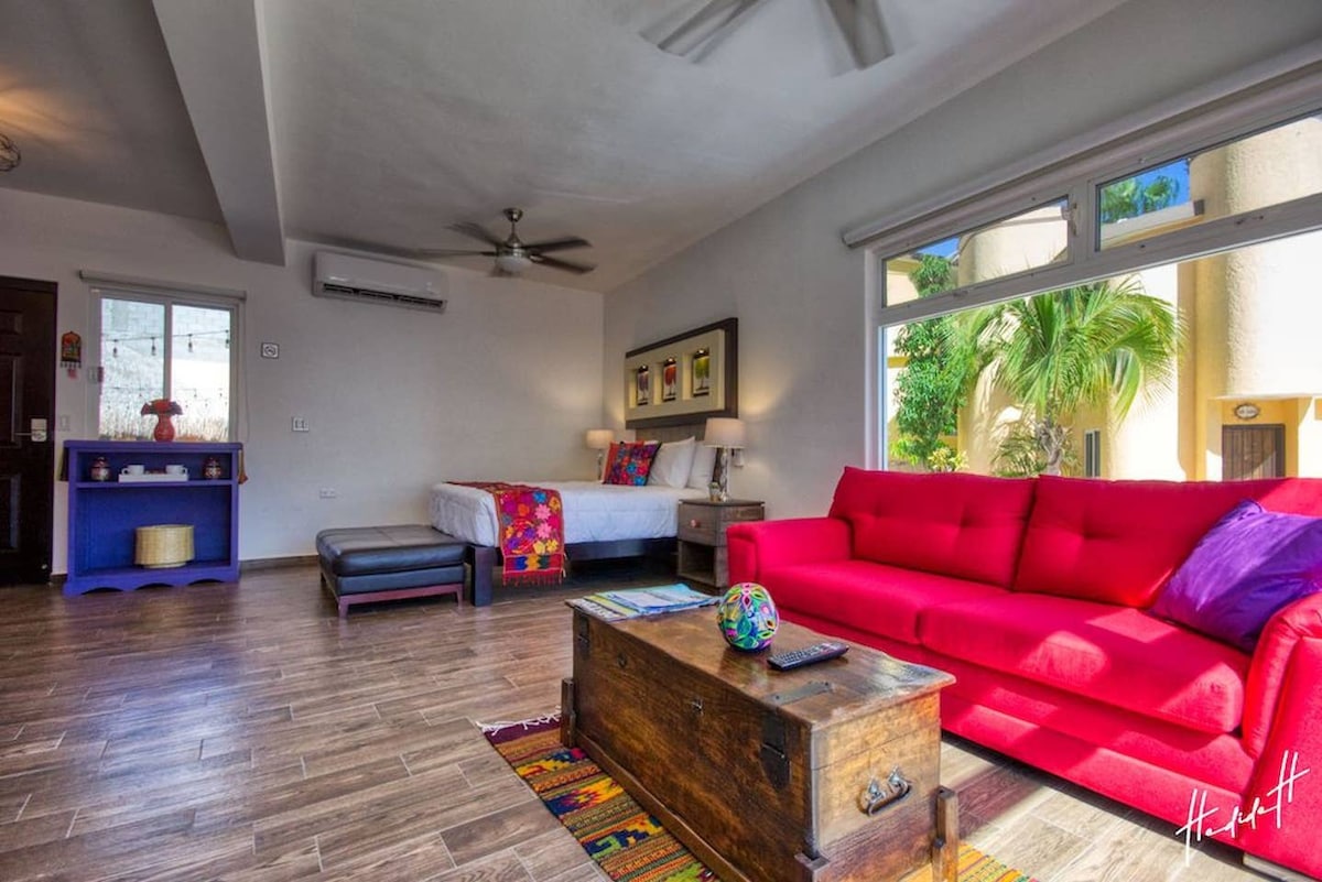Nasz apartament ma naprawdę wysoką wartość, sprawdź! Fantastyczne mieszkanie udekorowane przez dynamiczną meksykańską artystkę Tanyę Talamante, która dodała swój osobisty akcent! Posiada łóżko typu king size, salon, wspólny taras, prywatną łazienkę, klimatyzację, pościel, Wi-Fi, basen. Blisko wszystkiego, położone w ekskluzywnej dzielnicy artystycznej San Jose del Cabo i zabytkowym centrum miasta, w otoczeniu restauracji, barów, galerii, w pobliżu ujścia rzeki i plaży.