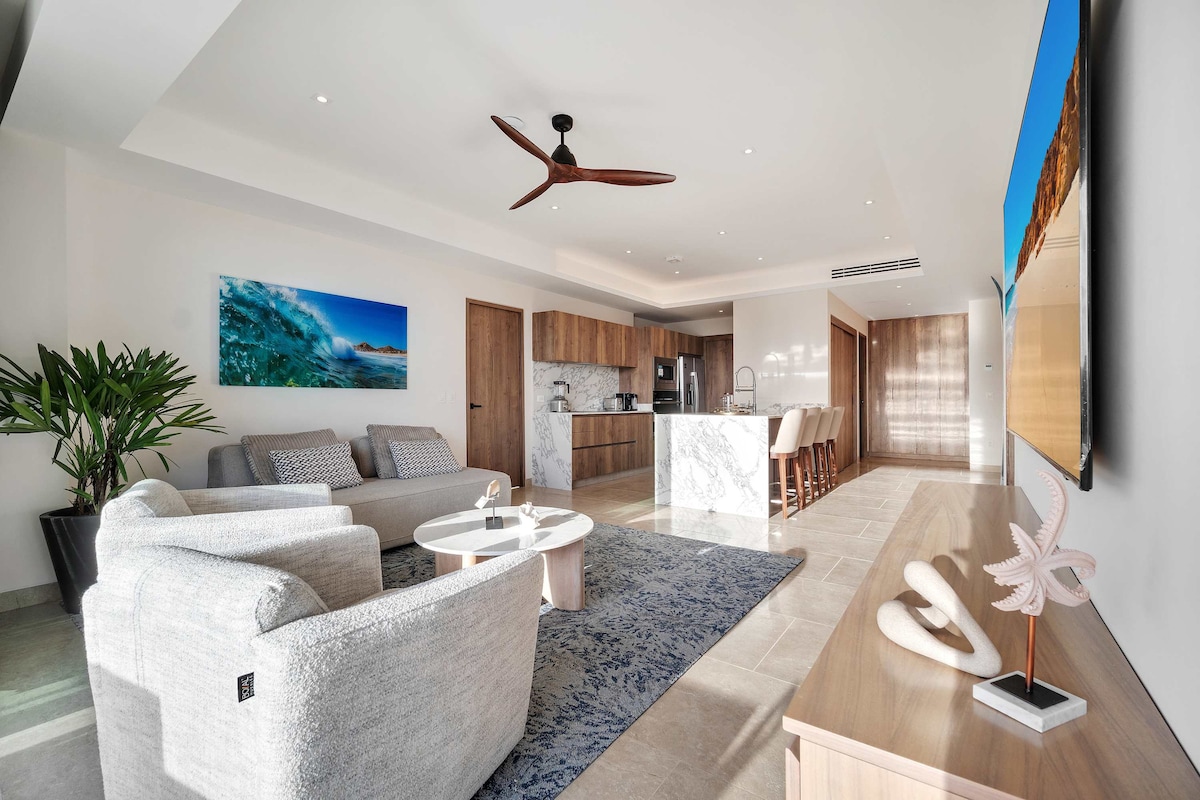 Witamy w naszym wspaniałym apartamencie z niepowtarzalnym widokiem na słynny łuk Cabo San Lucas! Położony w wyjątkowej lokalizacji w samym sercu miasta, nasz luksusowy obiekt oferuje idealne połączenie komfortu, stylu i wygody. Z przestronnego salonu roztacza się panoramiczny widok na łuk i lazurową taflę Oceanu Spokojnego. Apartament szczyci się gustownym i nowoczesnym wystrojem, a stylowe meble dodają wyrafinowania każdemu zakątkowi.
