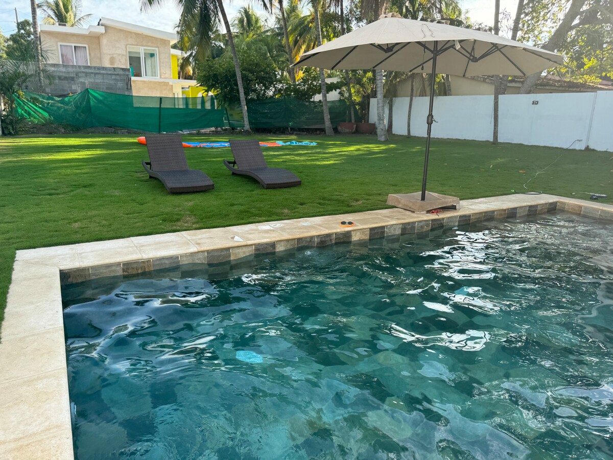 Wygodny i przytulny kompletny dom dla 9 osób, klimatyzacja w każdym pokoju, prywatny basen, mniej niż 5 minut od plaży. Główna sypialnia z łazienką, telewizorem / kablówką i łóżkiem typu king size. 2 sypialnie współdzielą drugą łazienkę. Trzecia łazienka w pobliżu basenu. Ręczniki, papier, mydło i szampon / odżywka są zapewnione. Wyposażona kuchnia, salon z telewizorem / kablówką. Hamaki, grill (przybory są zapewnione). Dom znajduje się w całkowicie bezpiecznej dzielnicy mieszkaniowej. Wi-Fi dostępne.