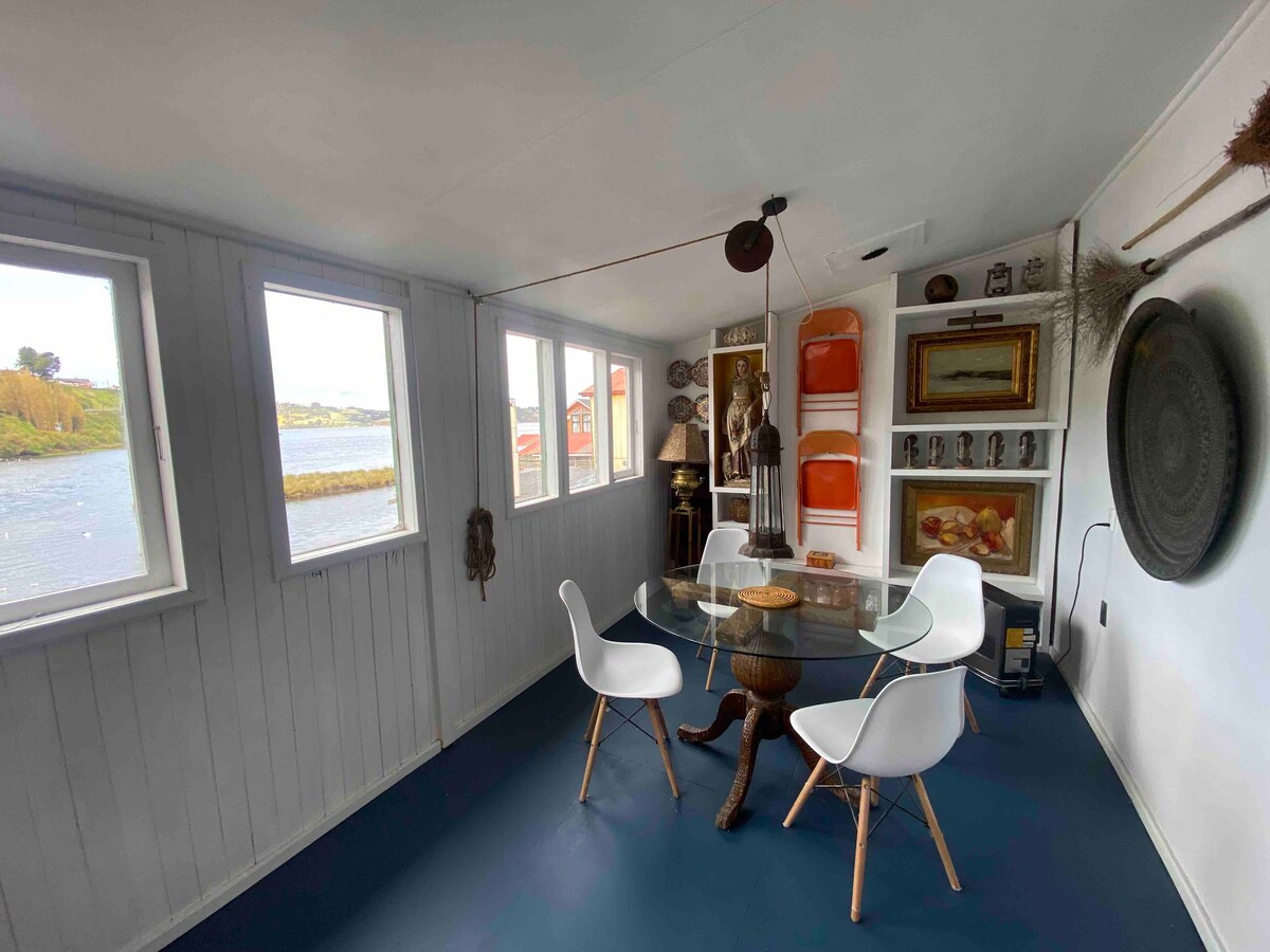 Vive la experiencia única de vivir en Palafito - sector Céntrico, Tranquilo y Seguro. Departamento independiente en Palafito. Es un ambiente amplio, equipado con cama matrimonial + sillón cama, cocina abierta, TV/Wifi, y baño cómodo. Calefacción central. Todo lo necesario para que tu estadía en Chiloé sea la más grata experiencia.