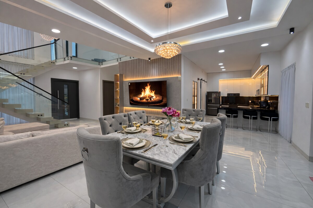 Nowoczesne mieszkanie w stylu minimalistycznym w Samborondón, położone w uprzywilejowanej okolicy z całodobową prywatną ochroną. Idealne dla rodzin lub osób pracujących, które szukają komfortu i spokoju. Tuż przed centrum handlowym El Dorado. Ma 3 sypialnie, każda z telewizorem z Netflixem i klimatyzacją. W salonie znajduje się 65-calowy telewizor. Masz również szybki internet o prędkości 100 Mb/s, idealny do wygodnej pracy i praktycznego, relaksującego pobytu.