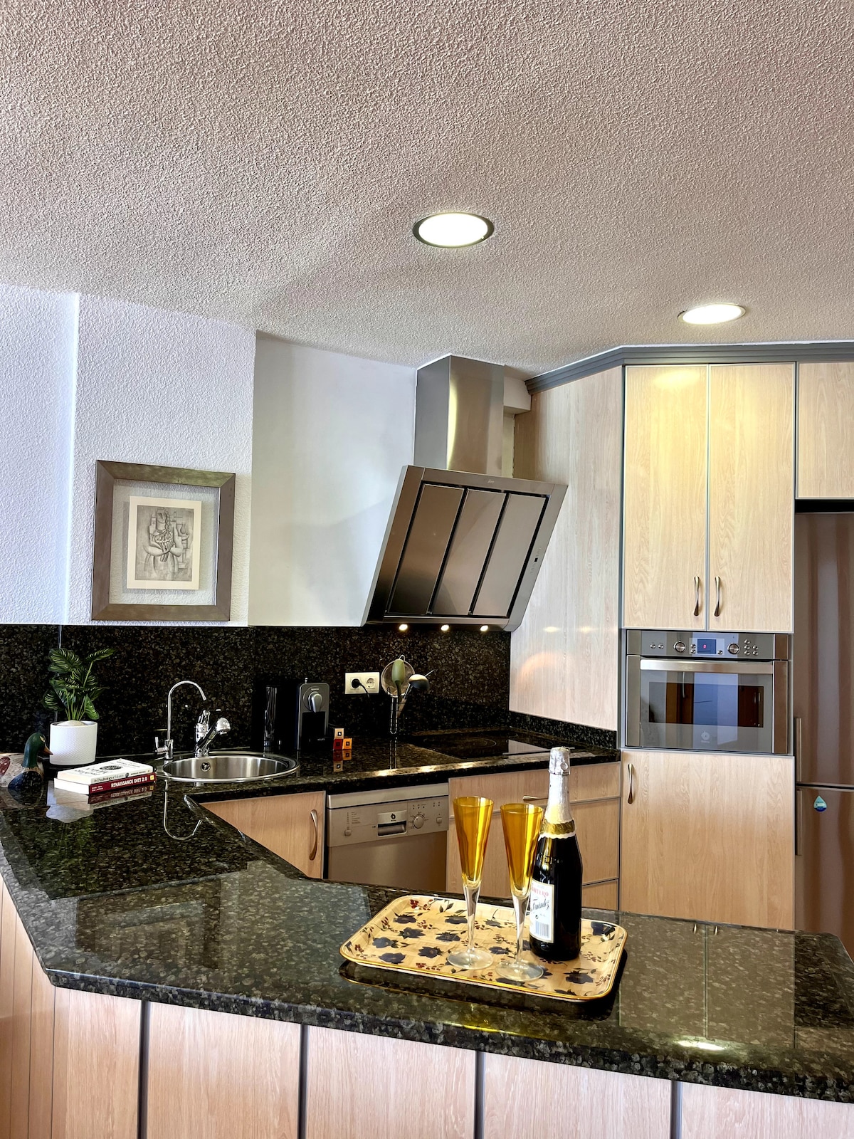 Widok na Morze Śródziemne, który wydaje się trwać wiecznie. Ten piękny apartament oferuje również luksusy, takie jak chłodne krzesło rozkładane, a także łazienkę z podwójną marmurową umywalką i dużym prysznicem przeciwdeszczowym. W apartamencie znajdują się dwie sypialnie z podwójnym łóżkiem i duży salon, dwie kompletne łazienki (jedna w apartamencie). Otwarta kuchnia w pełni wyposażona we wszystko, czego potrzebujesz: toster, ekspres do kawy, zmywarkę, piekarnik, czajnik... Apartament jest bardzo cichy i idealny na cały rok przyjemny i chłodny pobyt. Internet WIFI Ręczniki i pościel, żel i szampon, udogodnienia. Z przyjemnością pomożemy Ci we wszystkim, czego potrzebujesz podczas pobytu (restauracje, spa, plaże, sporty wodne). Ta stylowa nieruchomość jest idealnie położona w Postiguet Beach, w samym sercu Alicante. Znajduje się również w odległości spaceru od głównych zabytków miasta, takich jak stare miasto, bulwar Explanada, Rambla i muzeum sztuk pięknych Gravina (MUBAG).