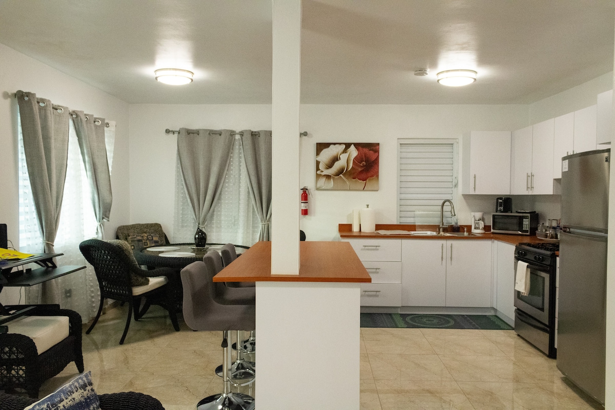 Jest to przytulny, czysty, bezpieczny, prywatny i piękny apartament położony w dobrej okolicy w pobliżu Barbosa Ave. (Metro Area), UPR (Puerto Rico Univ.) i centrum handlowe San Juan. To TYLKO 9 minut od LMM Int 'l Airport (SJU), 12 minut od plaży Isla Verde, 13 minut od Condado i 20 minut od Starego San Juan. Jedzenie, bankomaty, artykuły spożywcze są niedaleko. W obiekcie znajduje się pełna kuchnia z naczyniami i stołem jadalnym. W sypialni znajduje się 50" SMART TV, klimatyzacja i duża szafa z lustrzanymi drzwiami.