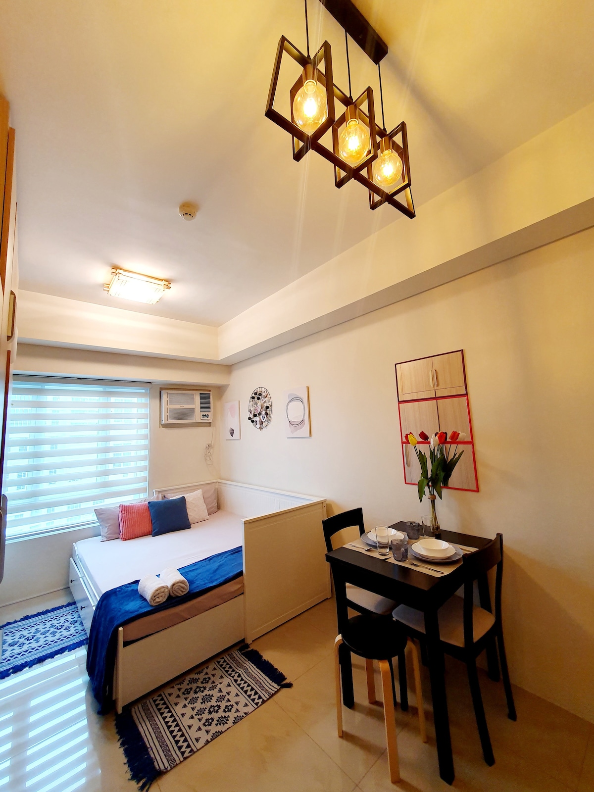 Przystępne cenowo i dostępne, ciesz się tą centralną lokalizacją w sercu dzielnicy biznesowej Makati, obok centrum handlowego, klubów, restauracji, szpitali, lotniska, kościoła i szkoły. Ten apartament typu studio jest wyposażony w telewizor Google, bezpłatny Netflix, łazienkę i toaletę, klimatyzację, kuchnię, bardzo szybkie Wi-Fi i stół jadalny. Łóżko typu Queen size i łóżko składane. Zameldowanie o dowolnej godzinie po 15:00 Wymeldowanie nie później niż o 12:00 Możesz poprosić o wcześniejsze zameldowanie, jeśli jest dostępne (uwaga: może ulec zmianie)